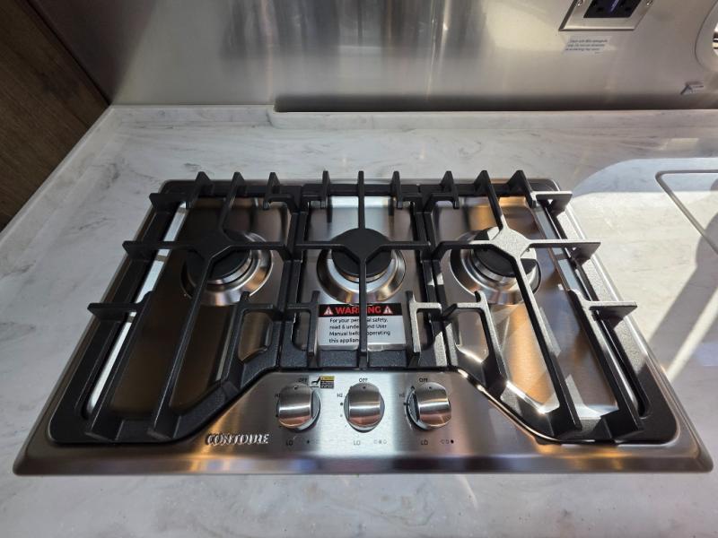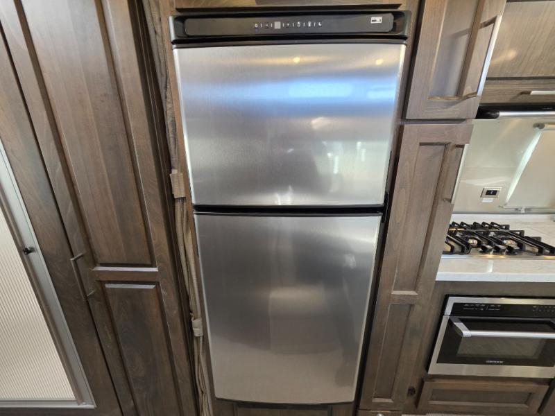 Enjoy luxury camping trips in this Classic travel trailer that really is a classic! The rear bedroom includes twin beds, along with storage space so you can keep your things organized. You can make breakfast on the three burner cooktop or in the convection microwave, and there is an 8.2 cu. ft. 12V refrigerator to keep your food fresh. A powered dinette and powered front lounge provide a place to relax, dine, and convert to sleeping space with the push of a button. The independent shower is right across the hall from the half bath for added convenience, and you're sure to appreciate the added comfort features, such as a heated towel bar, Kohler faucet and removable handheld aerating shower head!