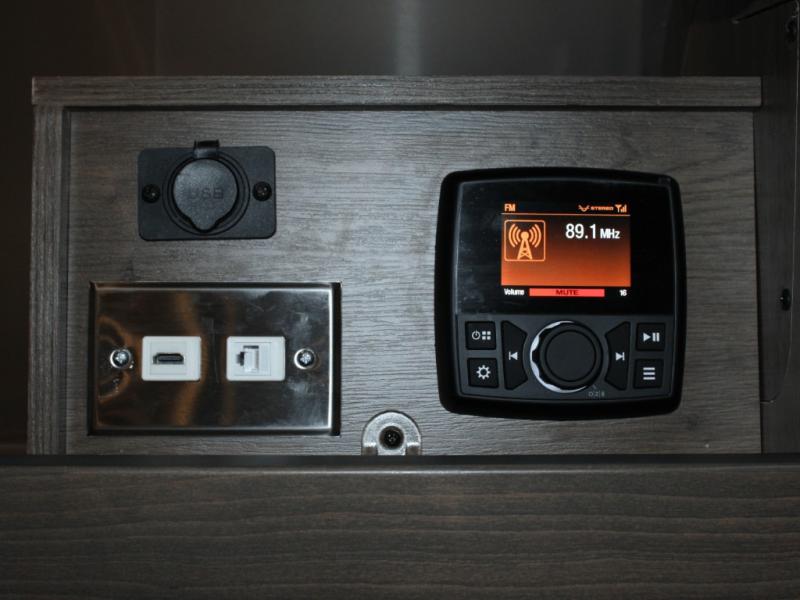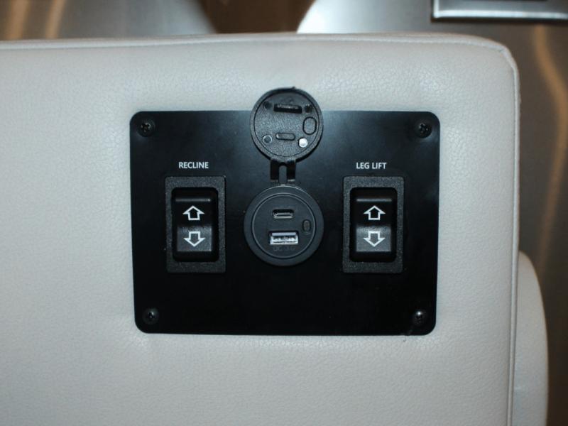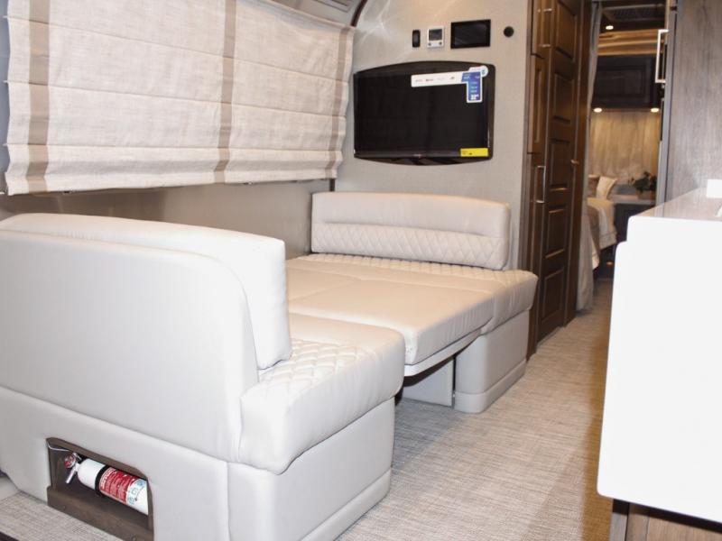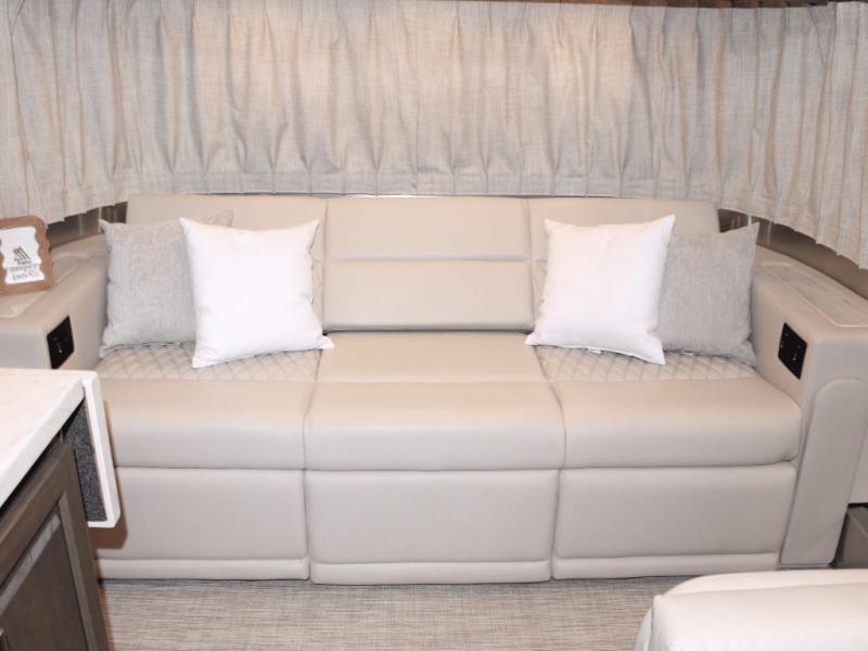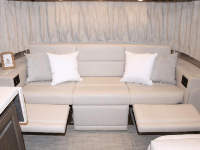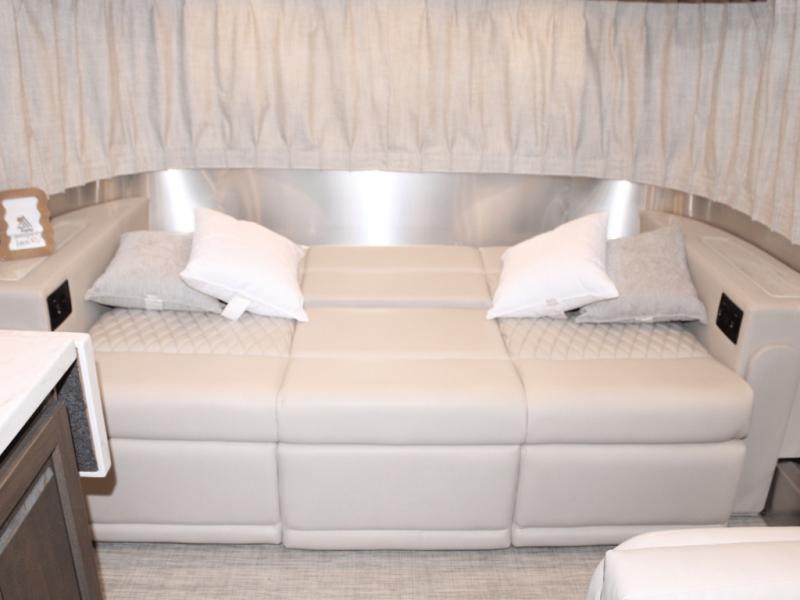 The powered dinette and front lounge easily transition from dining or relaxing to sleeping areas at the push of a button. Everything is designed to maximize comfort and flexibility—whether you're entertaining or winding down.