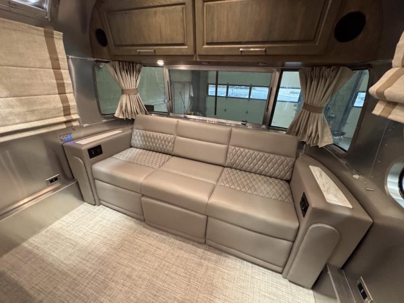 When it comes to full-time luxury living on the road, none other will do than a Classic travel trailer by Airstream. The sophisticated interior includes Ultraleather seating, a luxurious bathroom, handcrafted hardwood cabinetry, and a top-of-the-line kitchen with premium appliances. You will appreciate the rear-view monitoring system to easily park your trailer at the campsite, plus there are four powered heavy duty stabilizer jacks for easy set up. After you've unpacked, set up the powered ZipDee patio awning and adjust the LED dimmable awning light as you enjoy a cold drink. The Classic travel trailers also include QuietStream climate control that cools your unit quietly and evenly for a truly comfortable environment. Additional features you'll appreciate include a doorbell, a safe for valuables, two cushion ZipDee chairs, and premium environmental friendly insulation.