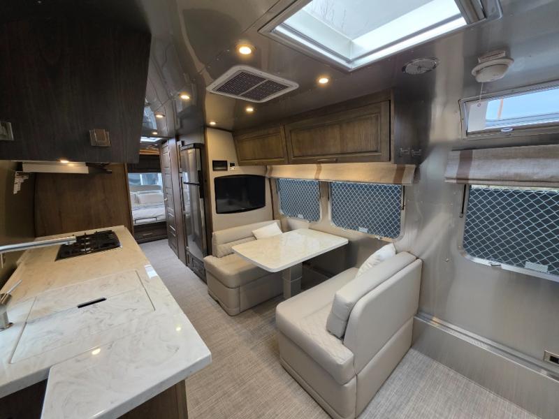 When it comes to full-time luxury living on the road, none other will do than a Classic travel trailer by Airstream. The sophisticated interior includes Ultraleather seating, a luxurious bathroom, handcrafted hardwood cabinetry, and a top-of-the-line kitchen with premium appliances. You will appreciate the rear-view monitoring system to easily park your trailer at the campsite, plus there are four powered heavy duty stabilizer jacks for easy set up. After you've unpacked, set up the powered ZipDee patio awning and adjust the LED dimmable awning light as you enjoy a cold drink. The Classic travel trailers also include QuietStream climate control that cools your unit quietly and evenly for a truly comfortable environment. Additional features you'll appreciate include a doorbell, a safe for valuables, two cushion ZipDee chairs, and premium environmental friendly insulation.