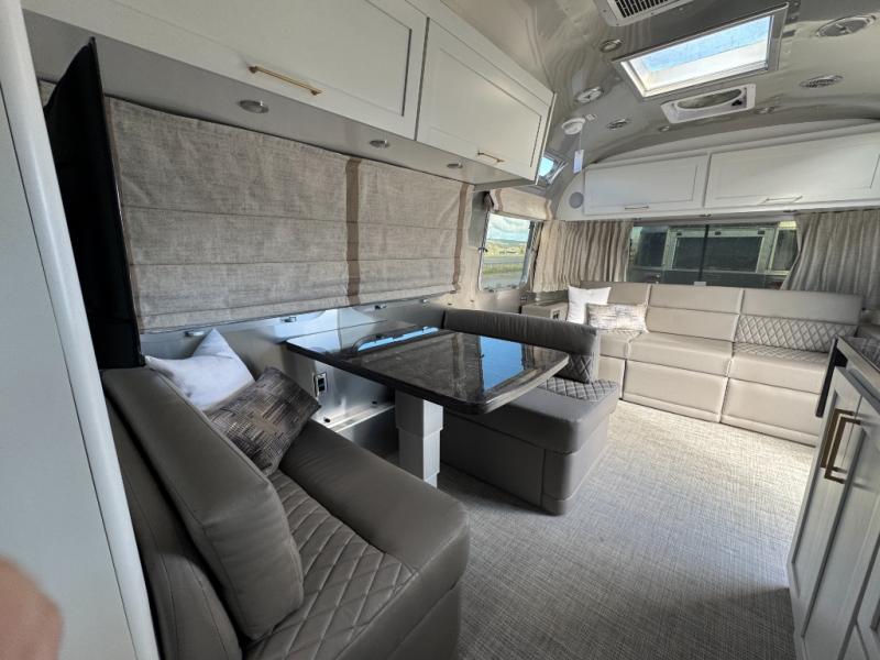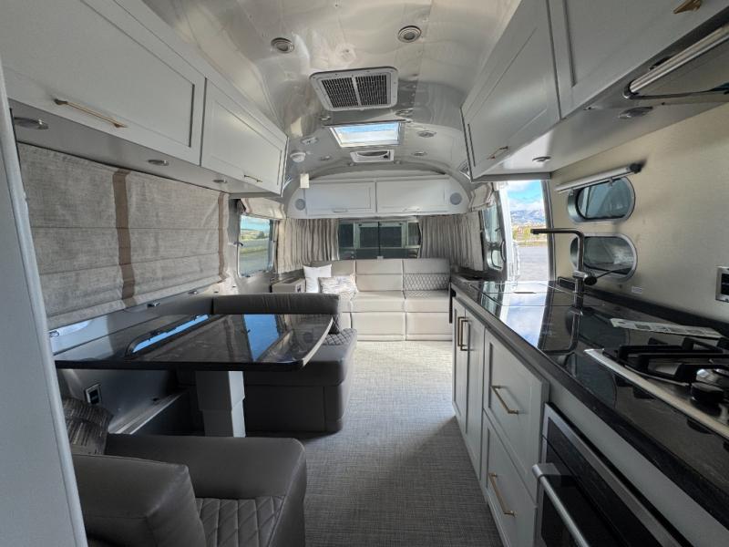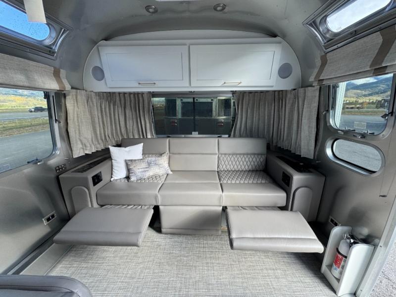 When it comes to full-time luxury living on the road, none other will do than a Classic travel trailer by Airstream. The sophisticated interior includes Ultraleather seating, a luxurious bathroom, handcrafted hardwood cabinetry, and a top-of-the-line kitchen with premium appliances. You will appreciate the rear-view monitoring system to easily park your trailer at the campsite, plus there are four powered heavy duty stabilizer jacks for easy set up. After you've unpacked, set up the powered ZipDee patio awning and adjust the LED dimmable awning light as you enjoy a cold drink. The Classic travel trailers also include QuiteStream climate control that cools your unit quietly and evenly for a truly comfortable environment! Additional features you'll appreciate include a doorbell, a safe for valuables, two cushion ZipDee chairs, and premium environmental friendly insulation.