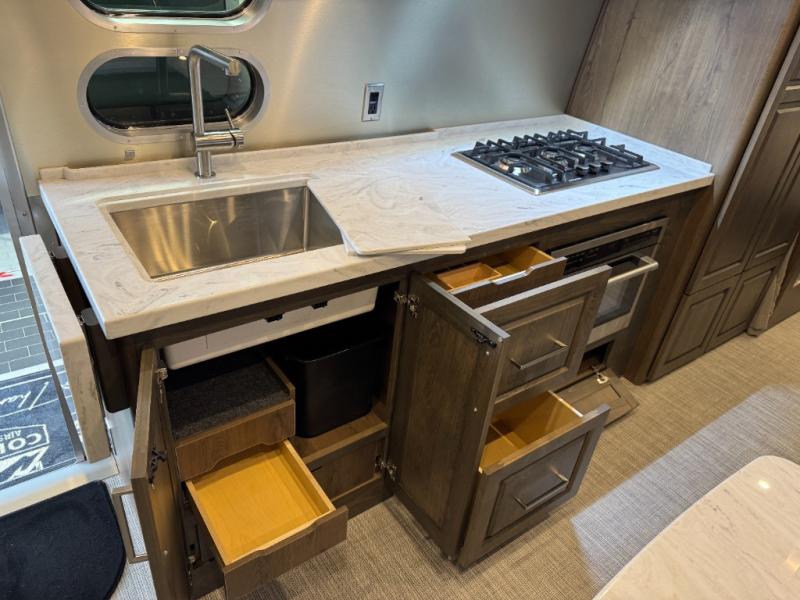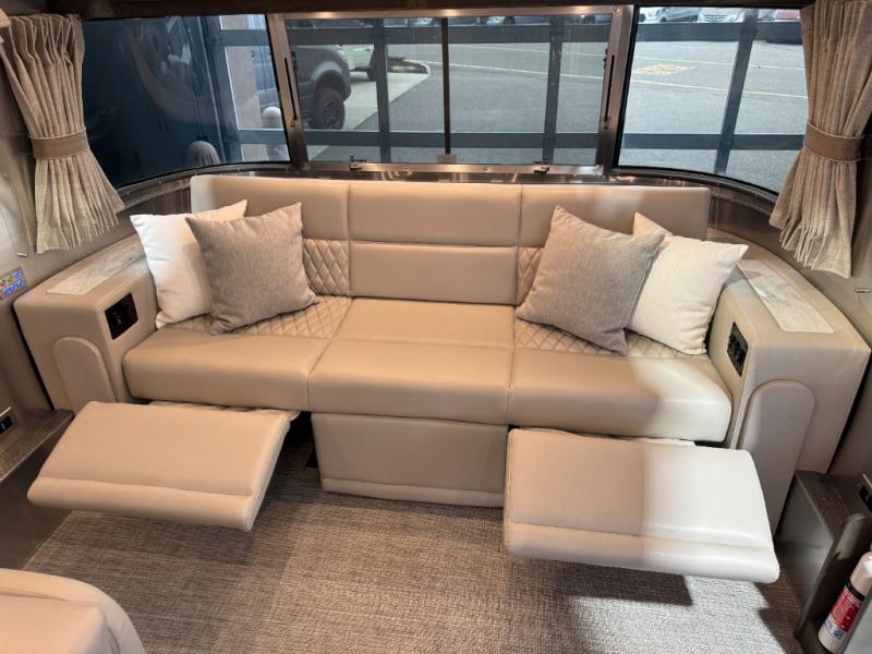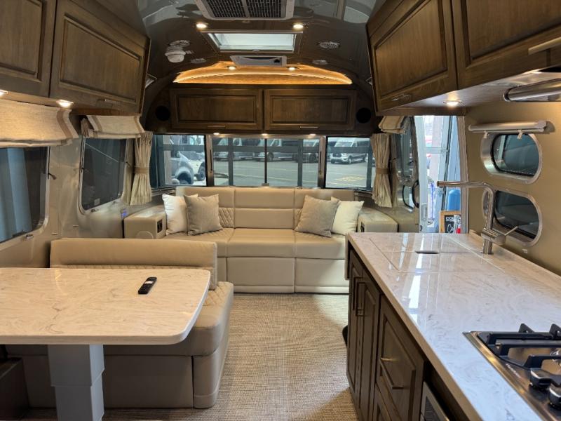 When it comes to full-time luxury living on the road, none other will do than a Classic travel trailer by Airstream. The sophisticated interior includes Ultraleather seating, a luxurious bathroom, handcrafted hardwood cabinetry, and a top-of-the-line kitchen with premium appliances. You will appreciate the rear-view monitoring system to easily park your trailer at the campsite, plus there are four powered heavy duty stabilizer jacks for easy set up. After you've unpacked, set up the powered ZipDee patio awning and adjust the LED dimmable awning light as you enjoy a cold drink. The Classic travel trailers also include QuietStream climate control that cools your unit quietly and evenly for a truly comfortable environment. Additional features you'll appreciate include a doorbell, a safe for valuables, two cushion ZipDee chairs, and premium environmental friendly insulation.