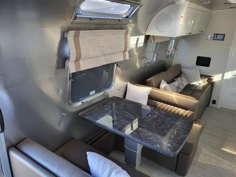 When it comes to full-time luxury living on the road, none other will do than a Classic travel trailer by Airstream. The sophisticated interior includes Ultraleather seating, a luxurious bathroom, handcrafted hardwood cabinetry, and a top-of-the-line kitchen with premium appliances. You will appreciate the rear-view monitoring system to easily park your trailer at the campsite, plus there are four powered heavy duty stabilizer jacks for easy set up. After you've unpacked, set up the powered ZipDee patio awning and adjust the LED dimmable awning light as you enjoy a cold drink. The Classic travel trailers also include QuiteStream climate control that cools your unit quietly and evenly for a truly comfortable environment! Additional features you'll appreciate include a doorbell, a safe for valuables, two cushion ZipDee chairs, and premium environmental friendly insulation.