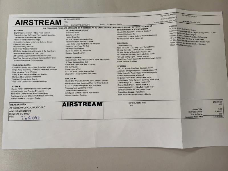 New 2026 Airstream Classic 33FB Twin Travel Trailer