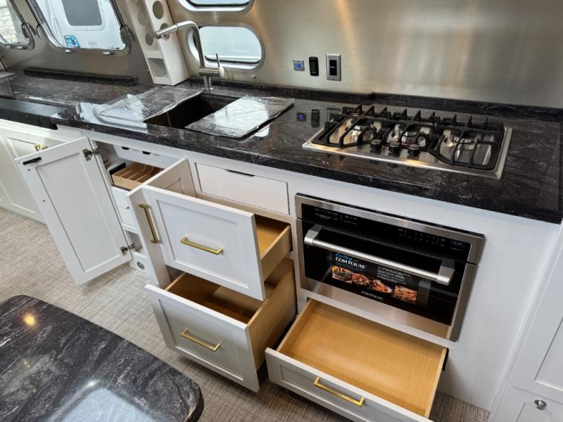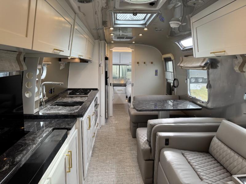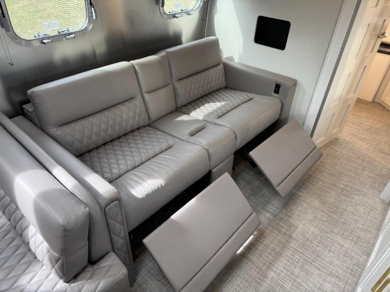 When it comes to full-time luxury living on the road, none other will do than a Classic travel trailer by Airstream. The sophisticated interior includes Ultraleather seating, a luxurious bathroom, handcrafted hardwood cabinetry, and a top-of-the-line kitchen with premium appliances. You will appreciate the rear-view monitoring system to easily park your trailer at the campsite, plus there are four powered heavy duty stabilizer jacks for easy set up. After you've unpacked, set up the powered ZipDee patio awning and adjust the LED dimmable awning light as you enjoy a cold drink. The Classic travel trailers also include QuiteStream climate control that cools your unit quietly and evenly for a truly comfortable environment! Additional features you'll appreciate include a doorbell, a safe for valuables, two cushion ZipDee chairs, and premium environmental friendly insulation.