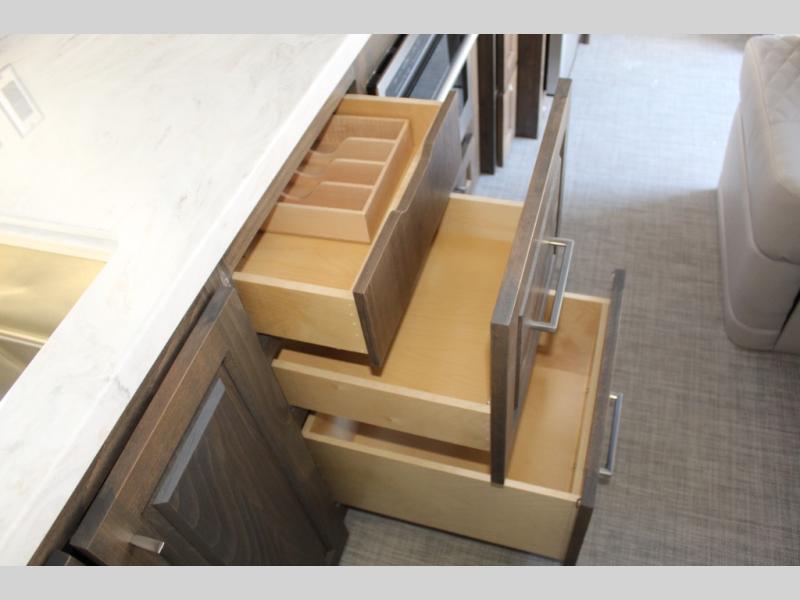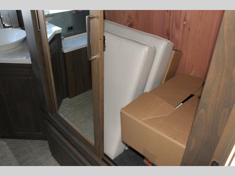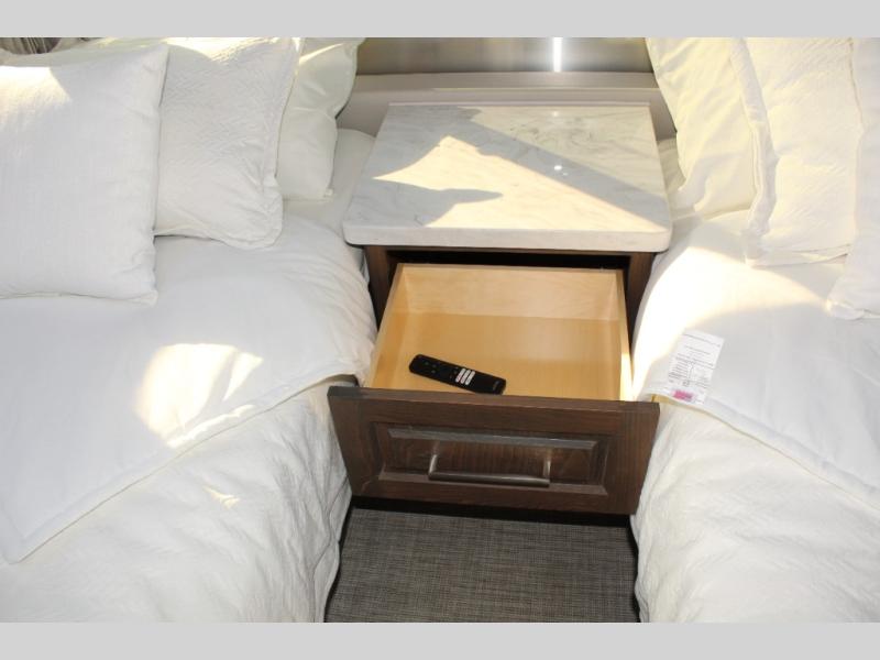 This travel trailer with power twin beds allow you to camp with your spouse or friend, so pack up for adventure! The front bedroom also includes a shared nightstand for your valuables and two closets to hang clothes. You'll love the lift TV and new Klipsch audio sound system, including four speakers so you can listen to your favorite tunes Head to the full rear bath to get clean up each day, and you'll appreciate the residential-style shower with a heated towel bar for added comfort.