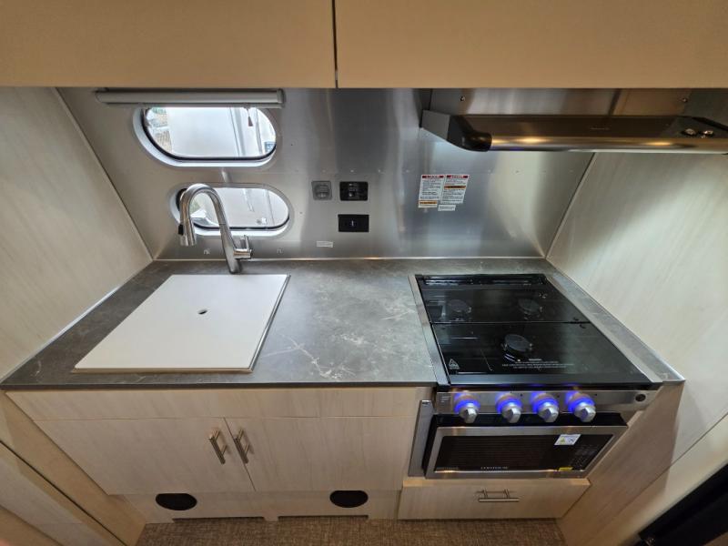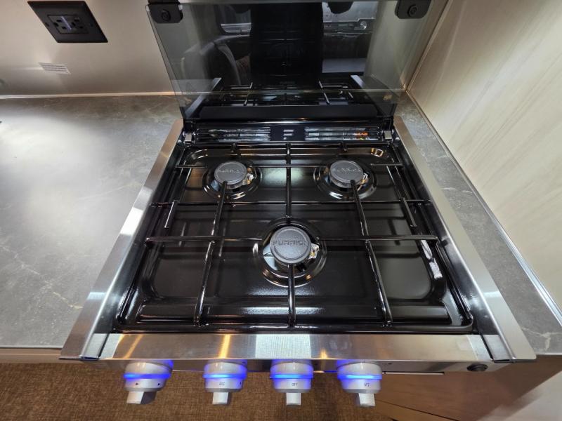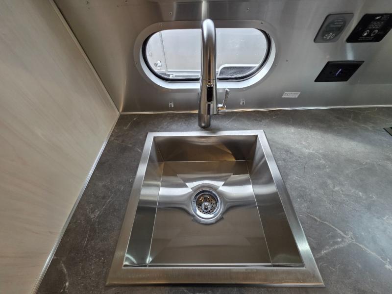 The family-friendly and popular Flying Cloud travel trailers by Airstream are built for ease of towing with a rear-view camera to make reversing and parking easier and stainless-steel front stone guards to protect the lower segments from road debris. The iconic Airstream design is created outside and inside by the semi-monocoque aluminum superstructure, the temperature reducing one-piece white aluminum roof, the panoramic front windows, and the stylish aluminum wheels. The interior will have you feeling right at home with handcrafted cabinetry, plenty of storage and counter space, sleek roller blinds and blackout curtains, plus residential style faucets!