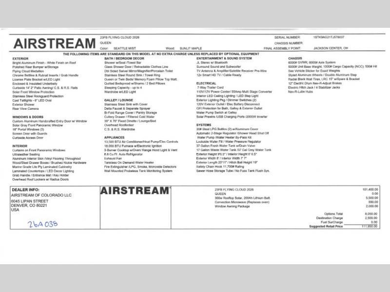 New 2026 Airstream Flying Cloud 23FB Travel Trailer