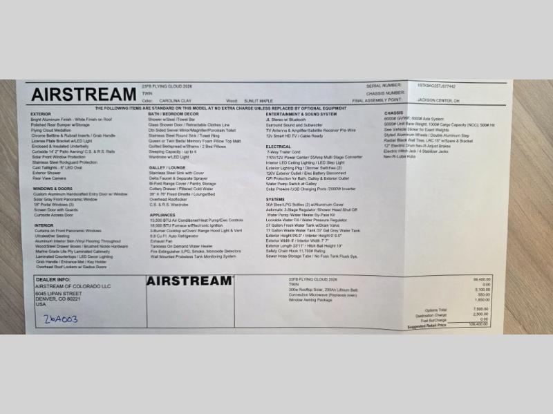 New 2026 Airstream Flying Cloud 23FB Twin Travel Trailer