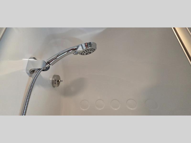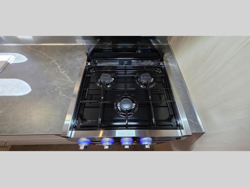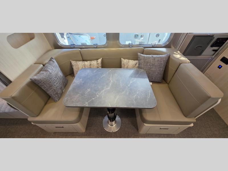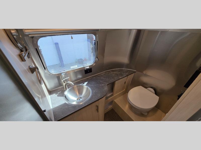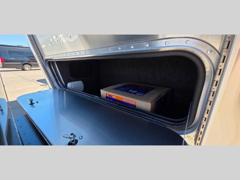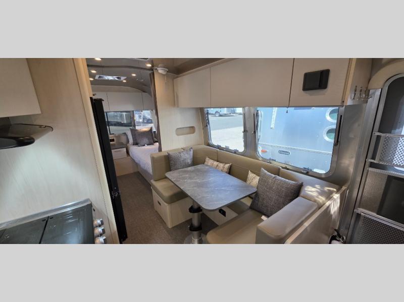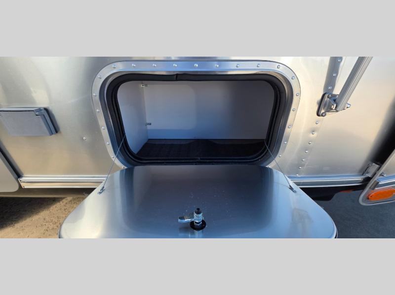 With each Flying Cloud travel trailer by Airstream, there are two axles, and each is built for ease of towing, plus there is a rear-view camera to make reversing and parking easier, and stainless steel front stone guards to protect the lower segments from road debris. The iconic Airstream design is created outside and inside by the semi-monocoque aluminum superstructure, the temperature reducing one-piece white aluminum roof, the panoramic front windows, and the stylish aluminum wheels. The interior will have you feeling right at home with handcrafted cabinetry, plenty of storage and counter space, sleek roller blinds and blackout curtains, plus residential style faucets!