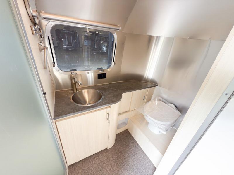 With each Flying Cloud travel trailer by Airstream, there are two axles, and each is built for ease of towing, plus there is a rear-view camera to make reversing and parking easier, and stainless steel front stone guards to protect the lower segments from road debris. The iconic Airstream design is created outside and inside by the semi-monocoque aluminum superstructure, the temperature reducing one-piece white aluminum roof, the panoramic front windows, and the stylish aluminum wheels. The interior will have you feeling right at home with handcrafted cabinetry, plenty of storage and counter space, sleek roller blinds and blackout curtains, plus residential style faucets!