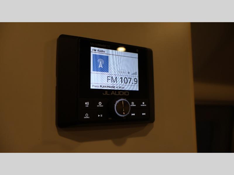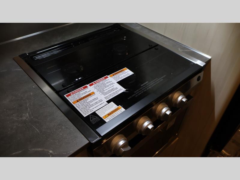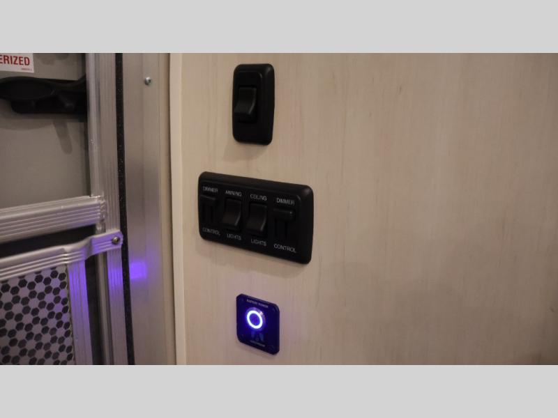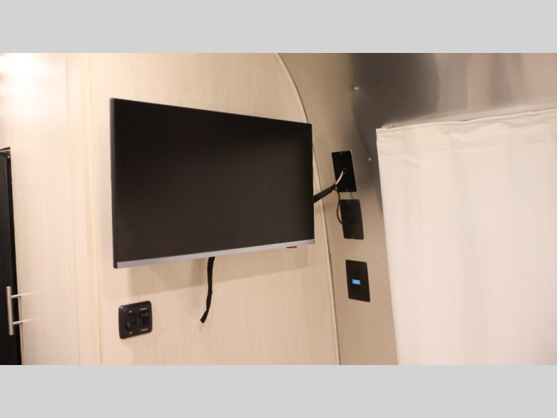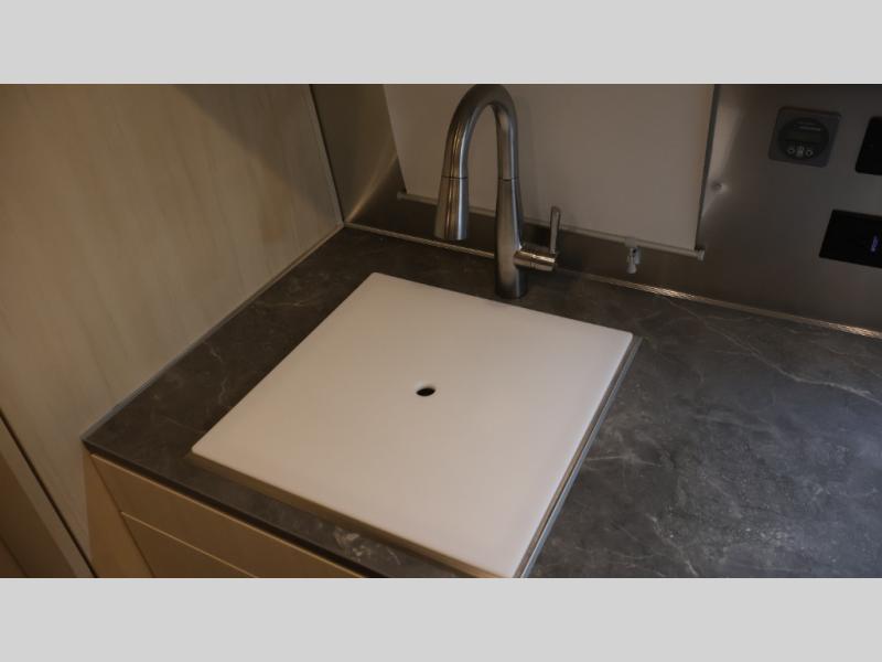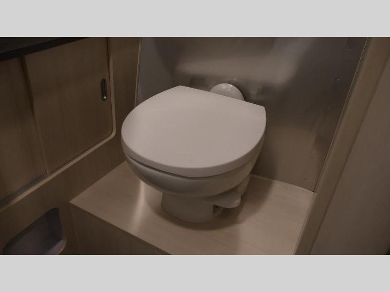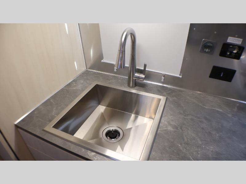 With each Flying Cloud travel trailer by Airstream, there are two axles, and each is built for ease of towing, plus there is a rear-view camera to make reversing and parking easier, and stainless-steel front stone guards to protect the lower segments from road debris. The iconic Airstream design is created outside and inside by the semi-monocoque aluminum superstructure, the temperature reducing one-piece white aluminum roof, the panoramic front windows, and the stylish aluminum wheels. The interior will have you feeling right at home with handcrafted cabinetry, plenty of storage and counter space, sleek roller blinds and blackout curtains, plus residential style faucets!