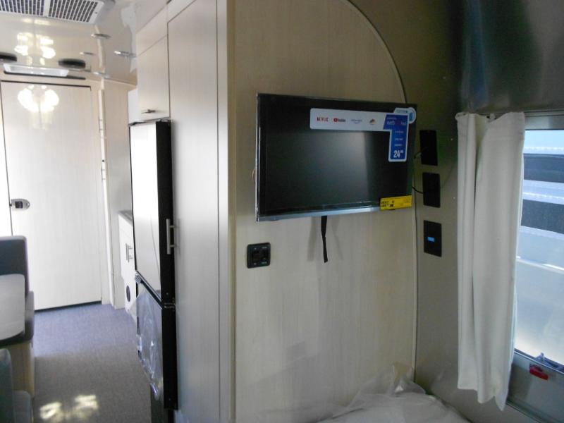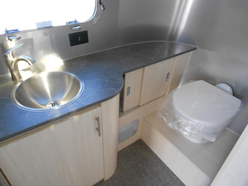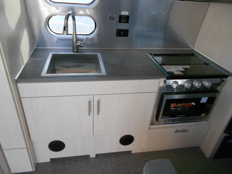 With each Flying Cloud travel trailer by Airstream, there are two axles, and each is built for ease of towing, plus there is a rear-view camera to make reversing and parking easier, and stainless-steel front stone guards to protect the lower segments from road debris. The iconic Airstream design is created outside and inside by the semi-monocoque aluminum superstructure, the temperature reducing one-piece white aluminum roof, the panoramic front windows, and the stylish aluminum wheels. The interior will have you feeling right at home with handcrafted cabinetry, plenty of storage and counter space, sleek roller blinds and blackout curtains, plus residential style faucets!