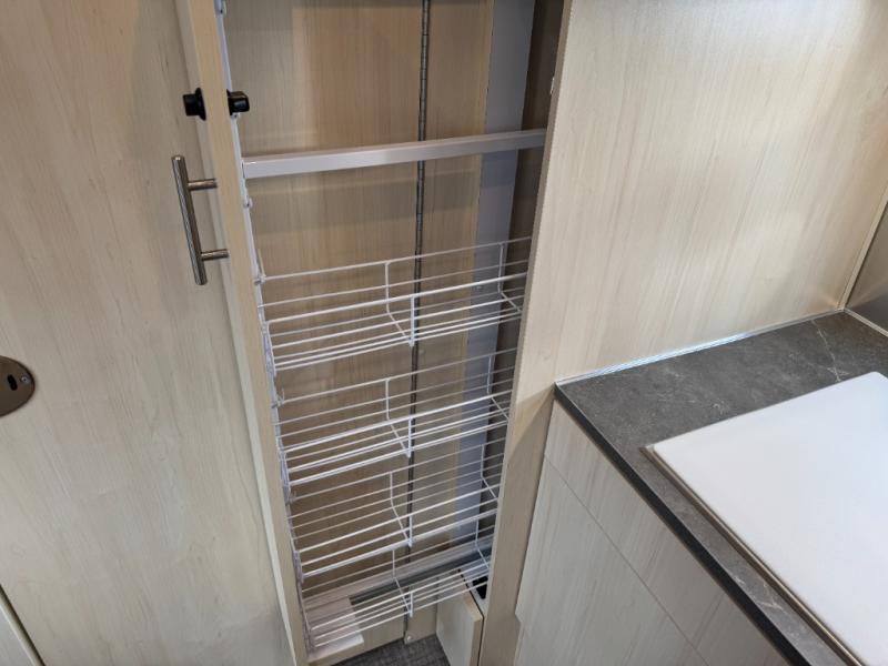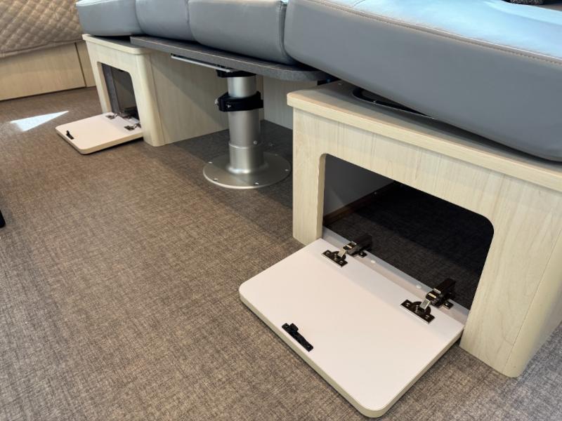 Enjoy this trailer as a couples retreat or a family get-away when you have enough space for four to dine at the U-shaped dinette that is convertible into extra sleeping space with the help of the sturdy base table and back cushions on top. You will have your own bedroom up front with lots of natural lighting and great views, plus a comfortable queen bed or optional twin beds. The galley kitchen offers everything you need to make meals including a stove/microwave, a stainless steel sink and counter space. And you will find storage throughout for hanging clothes and under-the-bed storage for more items, plus there are upper and lower cabinets in the kitchen for your dishes and such. The full rear bathroom offers privacy and includes a large vanity, plus there is a bath window that opens for good air flow.