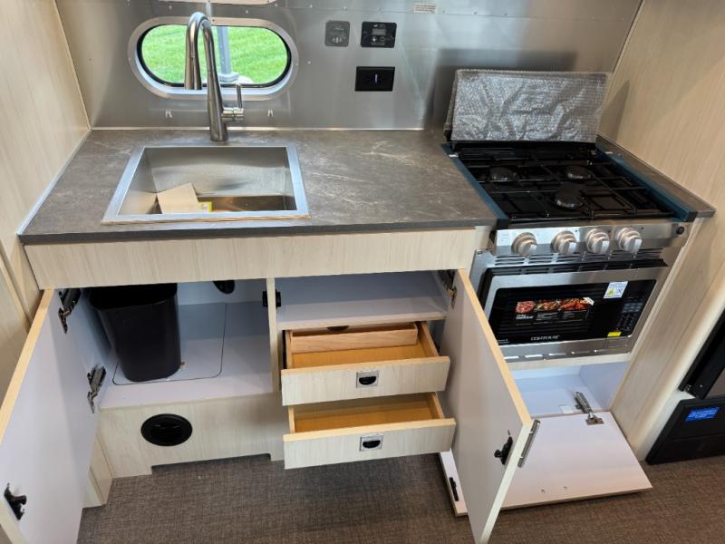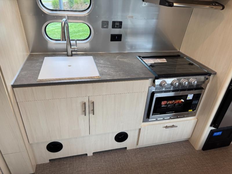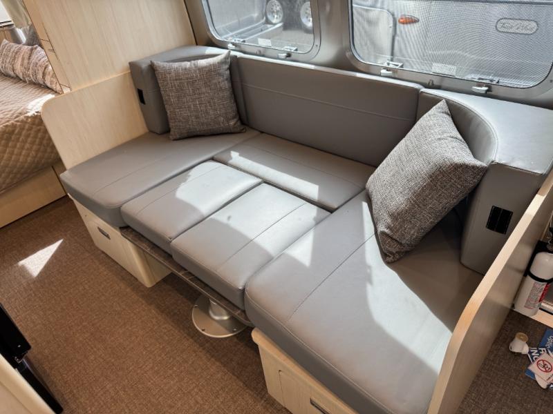 The family-friendly and popular Flying Cloud travel trailers by Airstream are built for ease of towing with a rear-view camera to make reversing and parking easier and stainless steel front stone guards to protect the lower segments from road debris. The iconic Airstream design is created outside and inside by the semi-monocoque aluminum superstructure, the temperature reducing one-piece white aluminum roof, the panoramic front windows, and the stylish aluminum wheels. The interior will have you feeling right at home with handcrafted cabinetry, plenty of storage and counter space, sleek roller blinds and blackout curtains, plus residential style faucets!