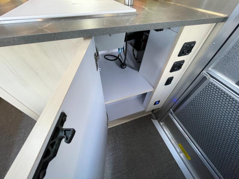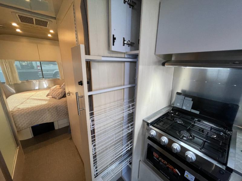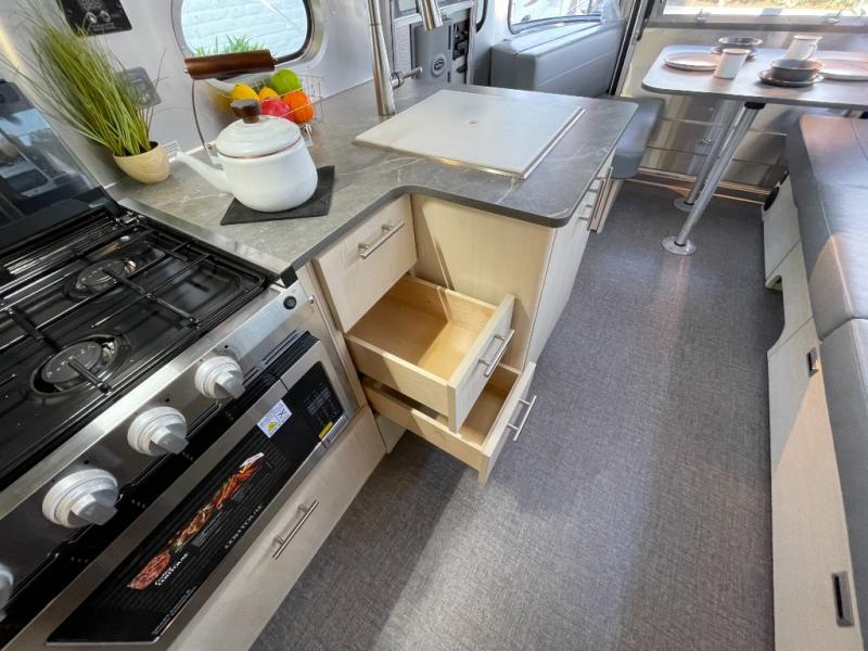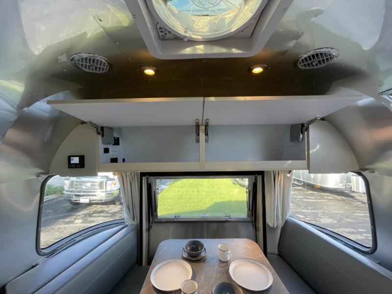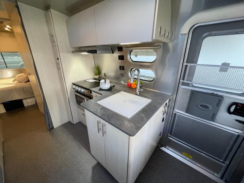 The family-friendly and popular Flying Cloud travel trailers by Airstream are built for ease of towing with a rear-view camera to make reversing and parking easier and stainless steel front stone guards to protect the lower segments from road debris. The iconic Airstream design is created outside and inside by the semi-monocoque aluminum superstructure, the temperature reducing one-piece white aluminum roof, the panoramic front windows, and the stylish aluminum wheels. The interior will have you feeling right at home with handcrafted cabinetry, plenty of storage and counter space, sleek roller blinds and blackout curtains, plus residential style faucets!