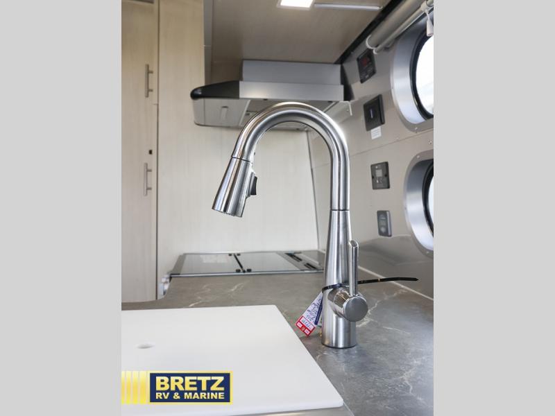 The family-friendly and popular Flying Cloud travel trailers by Airstream are built for ease of towing with a rear-view camera to make reversing and parking easier and stainless-steel front stone guards to protect the lower segments from road debris. The iconic Airstream design is created outside and inside by the semi-monocoque aluminum superstructure, the temperature reducing one-piece white aluminum roof, the panoramic front windows, and the stylish aluminum wheels. The interior will have you feeling right at home with handcrafted cabinetry, plenty of storage and counter space, sleek roller blinds and blackout curtains, plus residential style faucets!