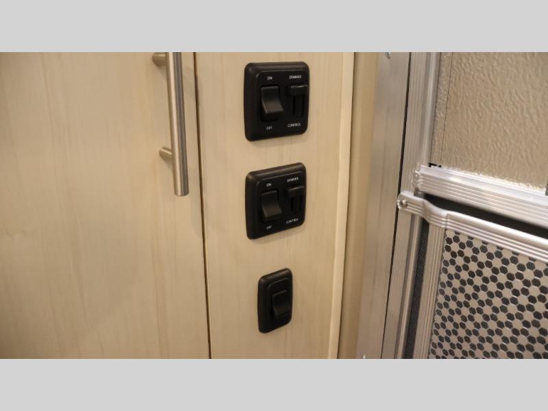 With each Flying Cloud travel trailer by Airstream, there are two axles, and each is built for ease of towing, plus there is a rear-view camera to make reversing and parking easier, and stainless steel front stone guards to protect the lower segments from road debris. The iconic Airstream design is created outside and inside by the semi-monocoque aluminum superstructure, the temperature reducing one-piece white aluminum roof, the panoramic front windows, and the stylish aluminum wheels. The interior will have you feeling right at home with handcrafted cabinetry, plenty of storage and counter space, sleek roller blinds and blackout curtains, plus residential style faucets!