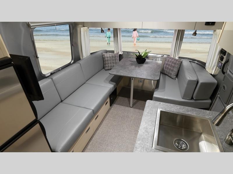 The family-friendly and popular Flying Cloud travel trailers by Airstream are built for ease of towing with a rear-view camera to make reversing and parking easier and stainless steel front stone guards to protect the lower segments from road debris. The iconic Airstream design is created outside and inside by the semi-monocoque aluminum superstructure, the temperature reducing one-piece white aluminum roof, the panoramic front windows, and the stylish aluminum wheels. The interior will have you feeling right at home with handcrafted cabinetry, plenty of storage and counter space, sleek roller blinds and blackout curtains, plus residential style faucets!