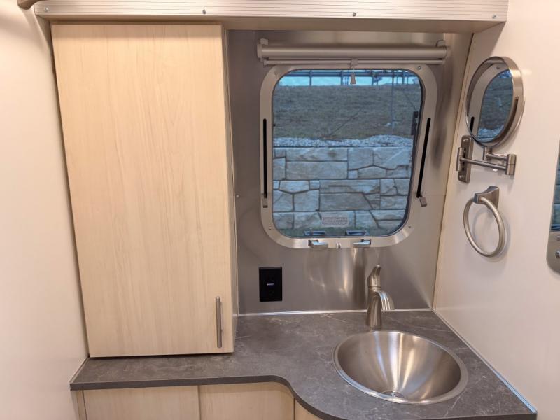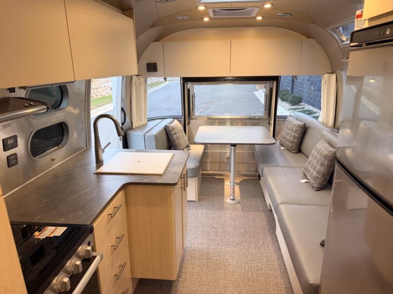 The family-friendly and popular Flying Cloud travel trailers by Airstream are built for ease of towing with a rear-view camera to make reversing and parking easier and stainless steel front stone guards to protect the lower segments from road debris. The iconic Airstream design is created outside and inside by the semi-monocoque aluminum superstructure, the temperature reducing one-piece white aluminum roof, the panoramic front windows, and the stylish aluminum wheels. The interior will have you feeling right at home with handcrafted cabinetry, plenty of storage and counter space, sleek roller blinds and blackout curtains, plus residential style faucets!