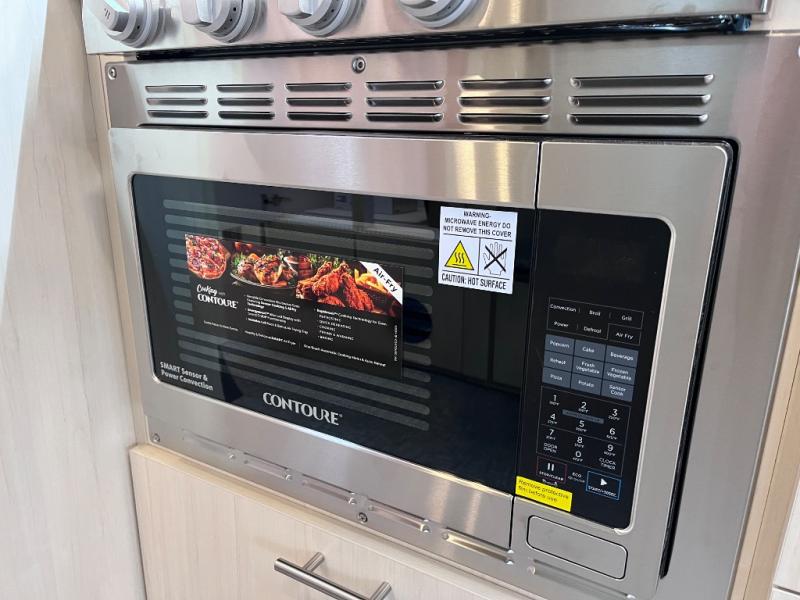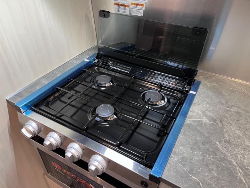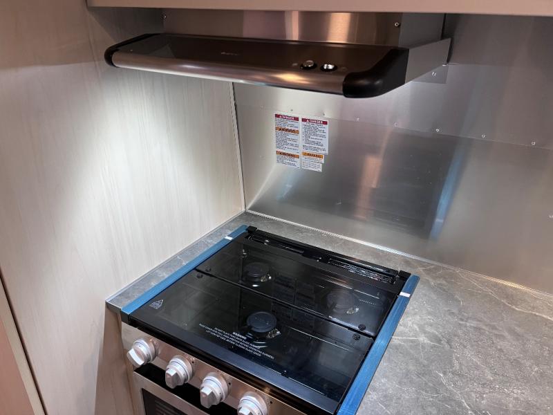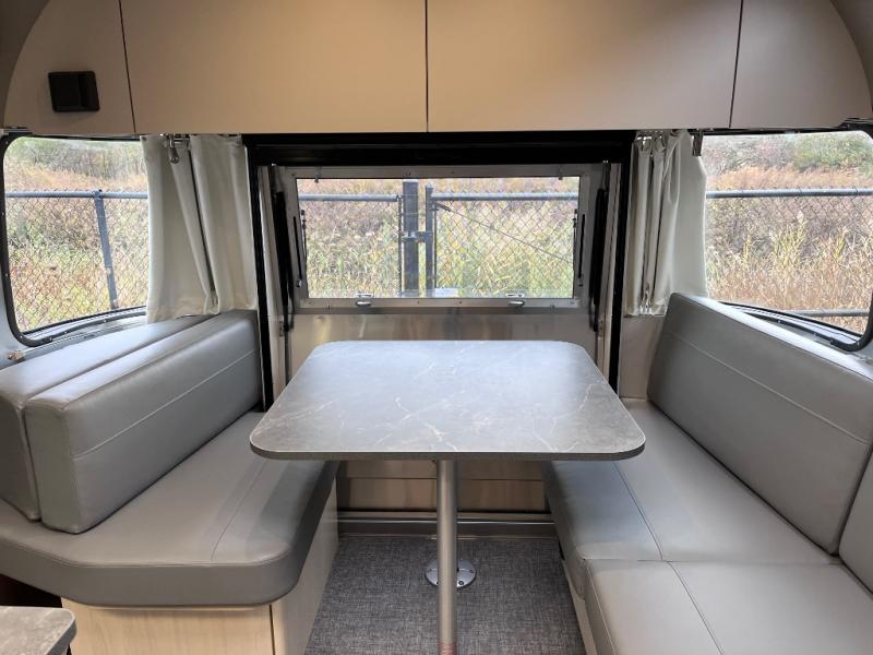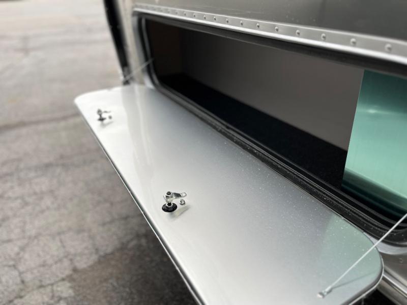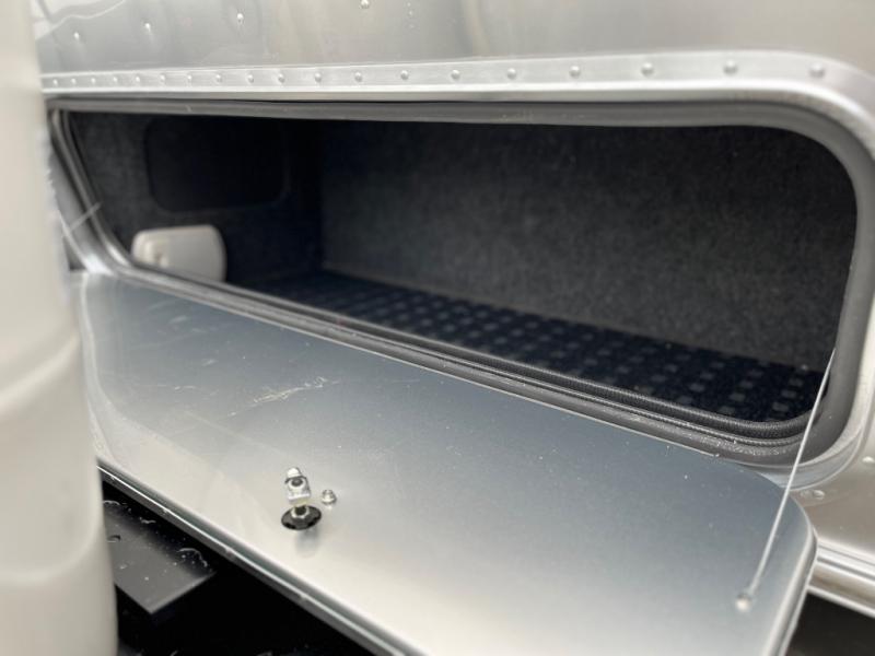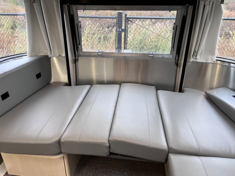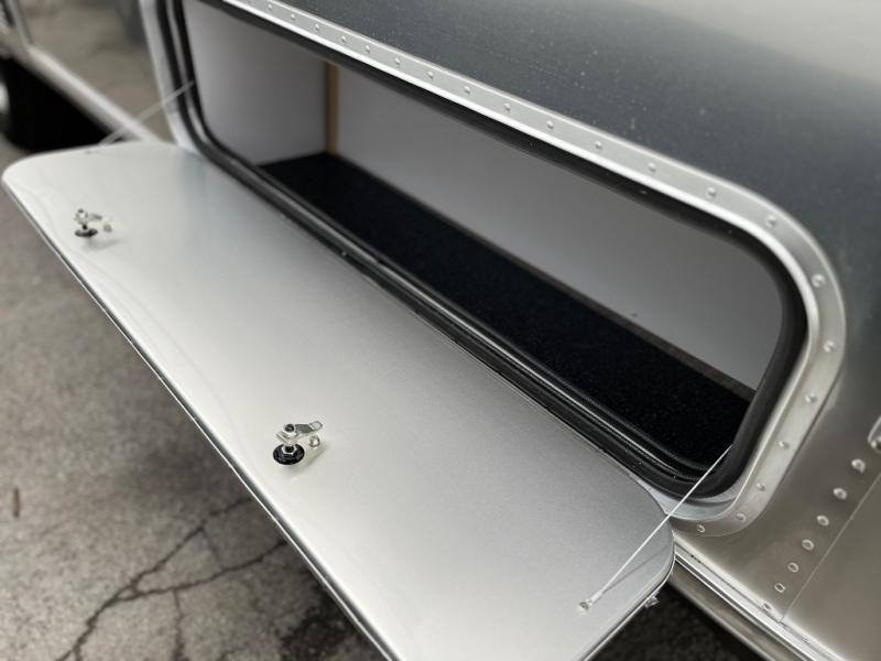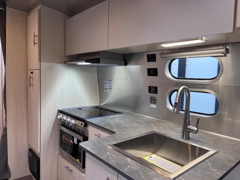 With each Flying Cloud travel trailer by Airstream, there are two axles, and each is built for ease of towing, plus there is a rear-view camera to make reversing and parking easier, and stainless-steel front stone guards to protect the lower segments from road debris. The iconic Airstream design is created outside and inside by the semi-monocoque aluminum superstructure, the temperature reducing one-piece white aluminum roof, the panoramic front windows, and the stylish aluminum wheels. The interior will have you feeling right at home with handcrafted cabinetry, plenty of storage and counter space, sleek roller blinds and blackout curtains, plus residential style faucets!