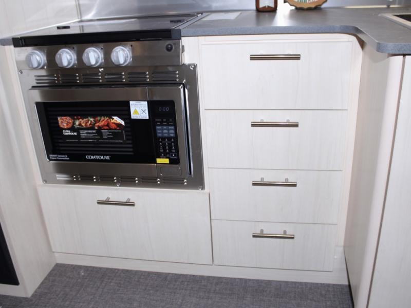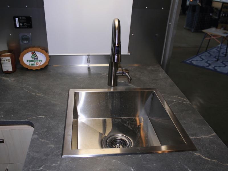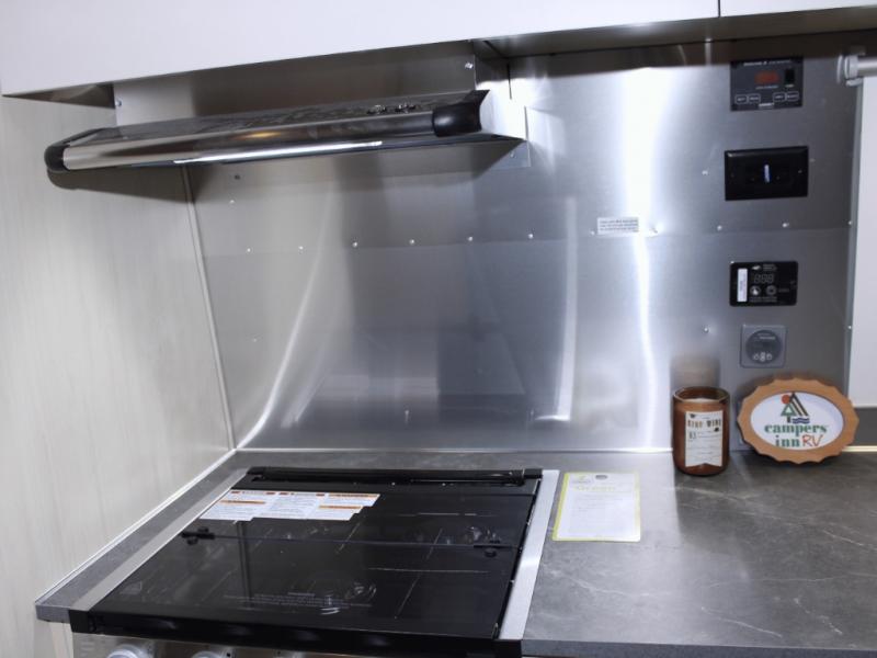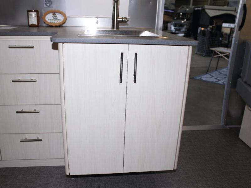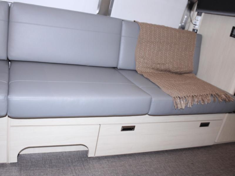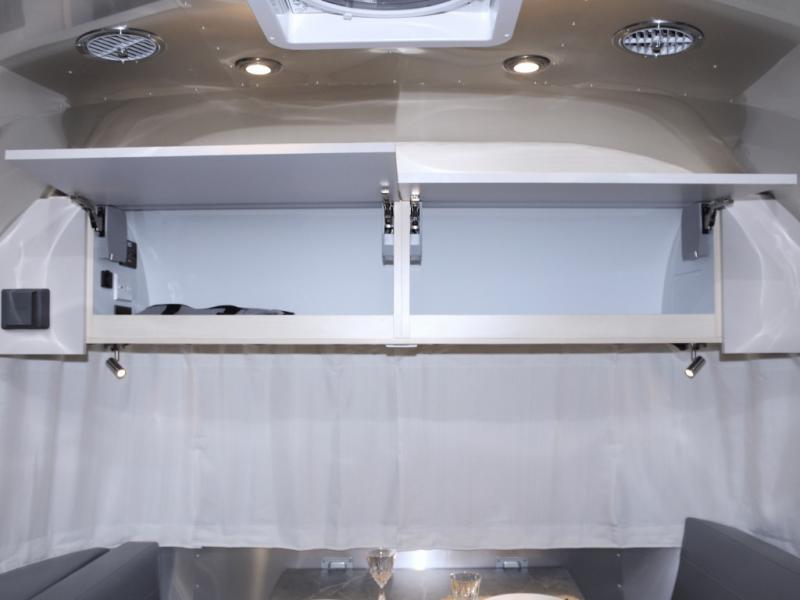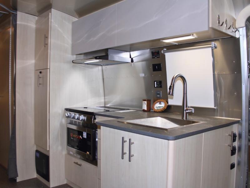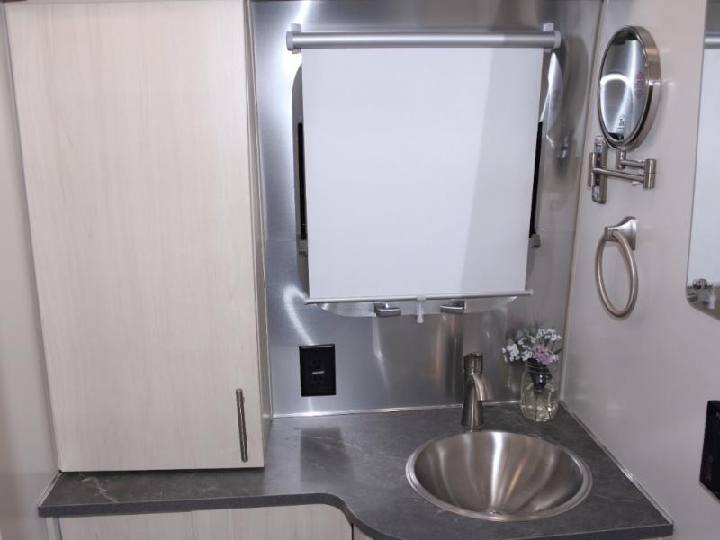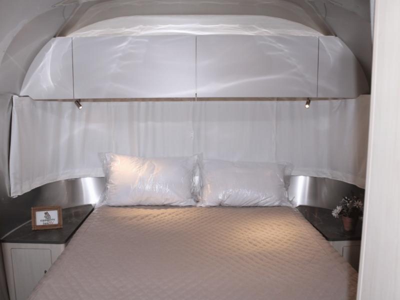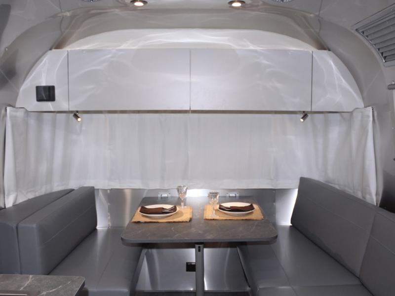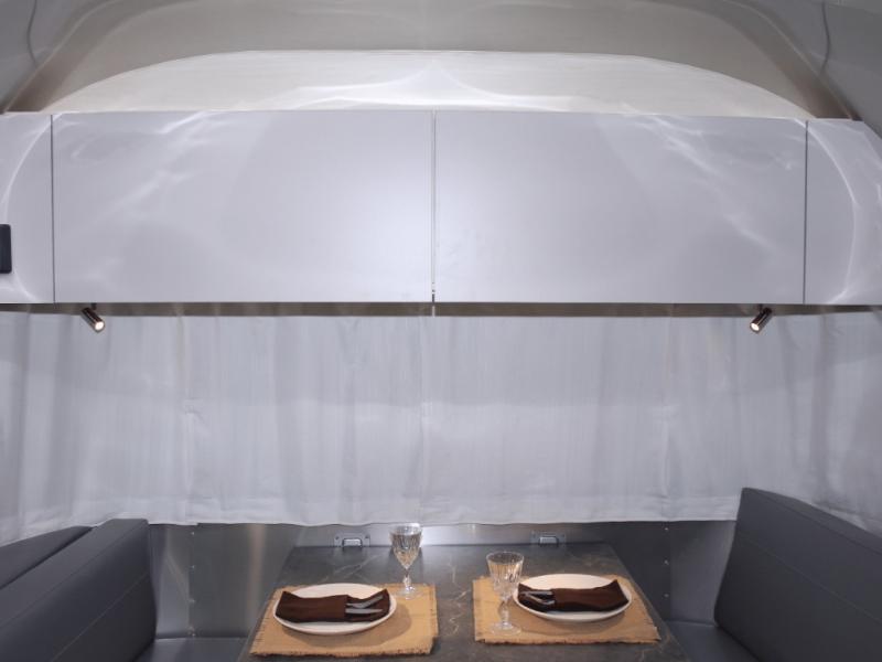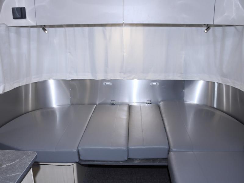 Built with Airstream’s iconic durability and attention to detail, the Flying Cloud features a semi-monocoque aluminum superstructure, temperature-reducing one-piece white aluminum roof, panoramic front windows, and stainless steel front stone guards to help protect your investment. Towing is made easier and safer with the rear-view camera, and stylish aluminum wheels complete the exterior look. Inside, enjoy handcrafted cabinetry, abundant storage, residential-style faucets, and sleek roller blinds with blackout curtains for nighttime privacy and comfort.