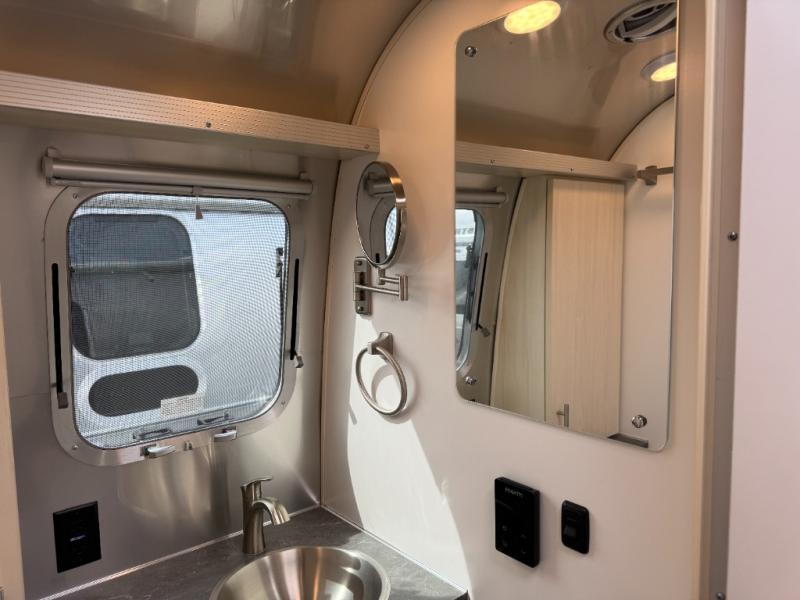 The family-friendly and popular Flying Cloud travel trailers by Airstream are built for ease of towing with a rear-view camera to make reversing and parking easier and stainless steel front stone guards to protect the lower segments from road debris. The iconic Airstream design is created outside and inside by the semi-monocoque aluminum superstructure, the temperature reducing one-piece white aluminum roof, the panoramic front windows, and the stylish aluminum wheels. The interior will have you feeling right at home with handcrafted cabinetry, plenty of storage and counter space, sleek roller blinds and blackout curtains, plus residential style faucets!