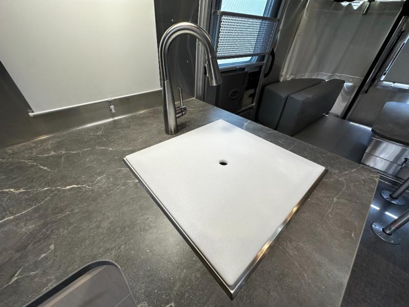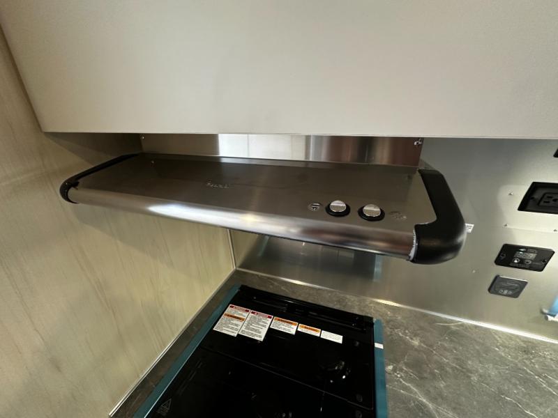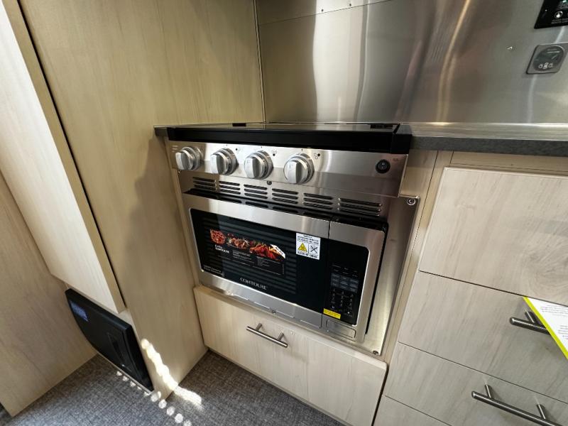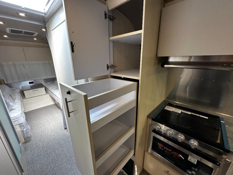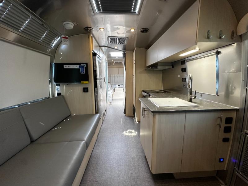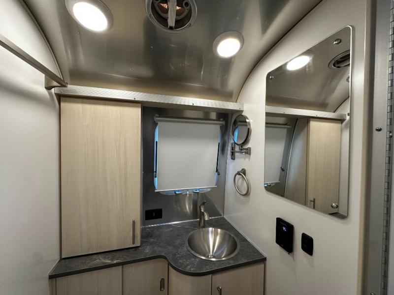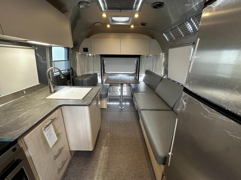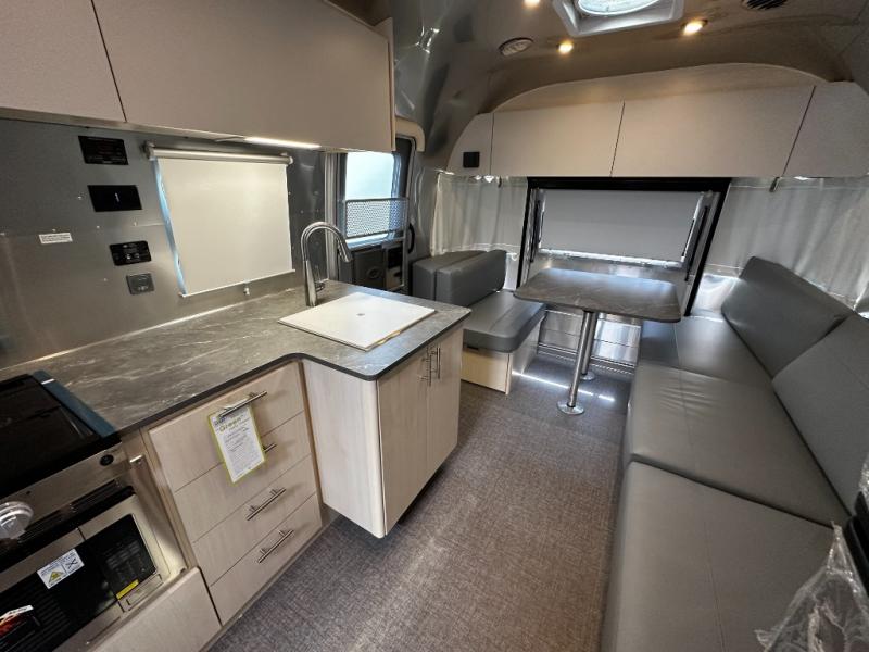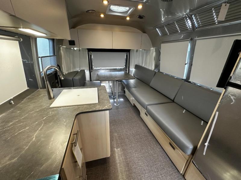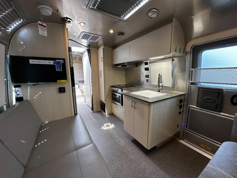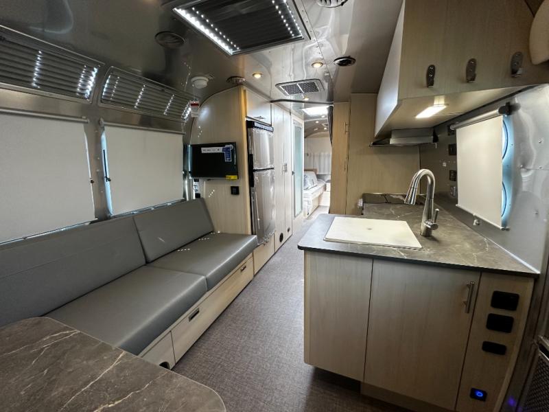 The 27FBT layout maximizes space with a front twin-bed configuration, making it easier for two people to sleep independently without sacrificing comfort. The open, airy interior is wrapped in panoramic windows, modern cabinetry, stainless-steel appliances, and soft accent lighting – all designed with a clean, contemporary feel that reflects Airstream's commitment to quality craftsmanship.