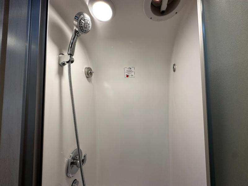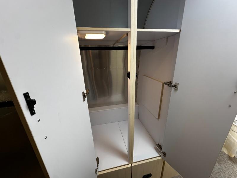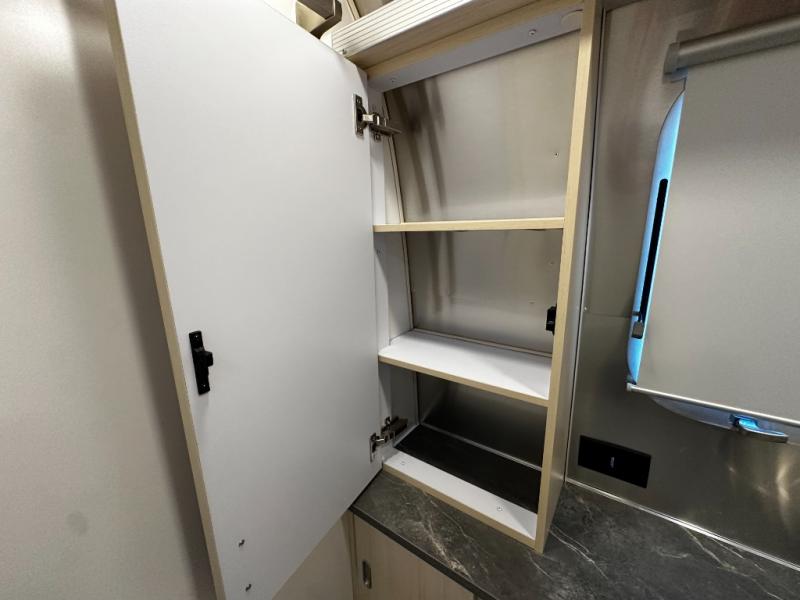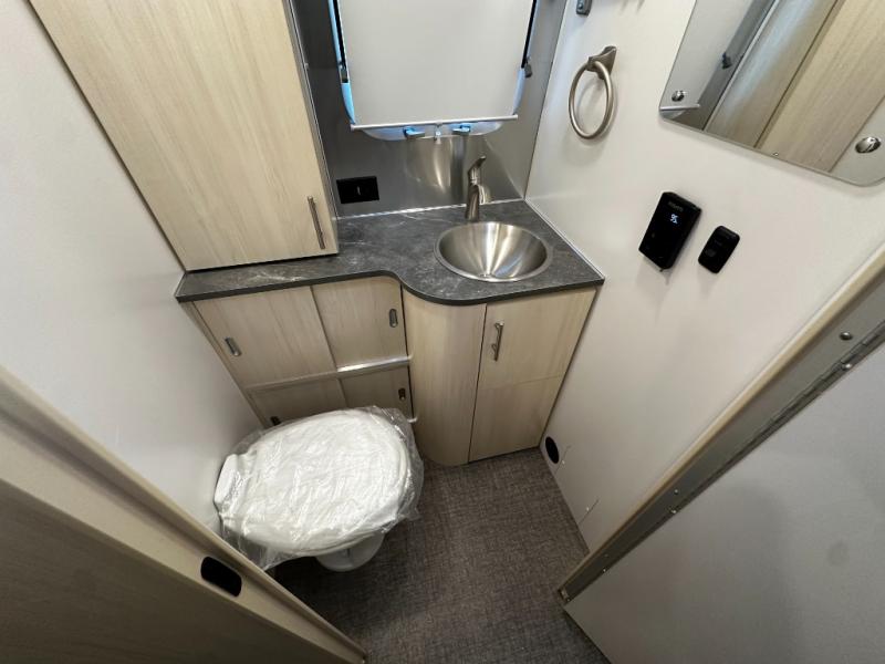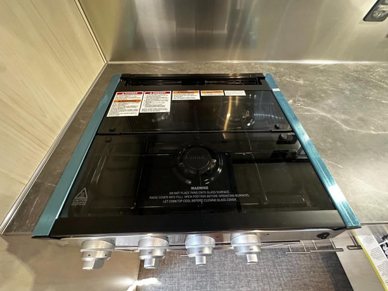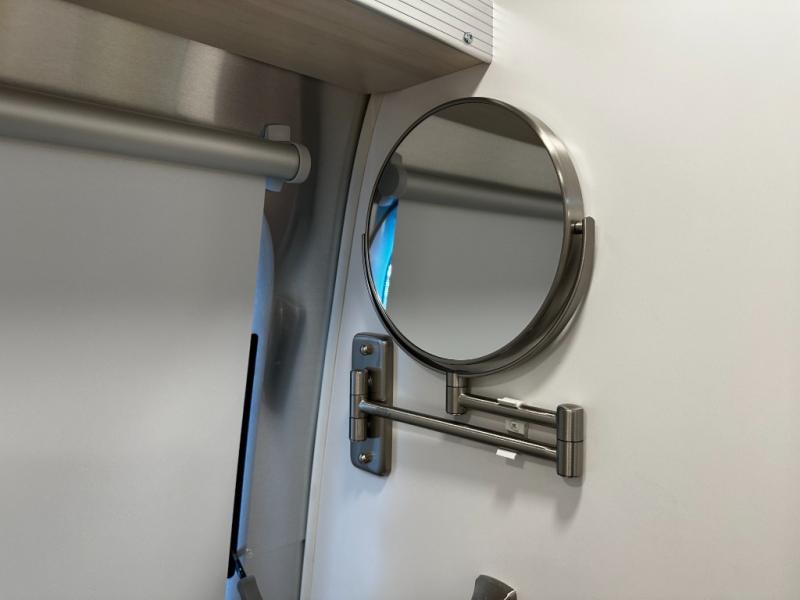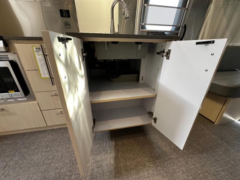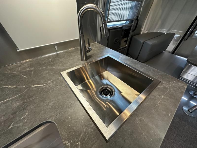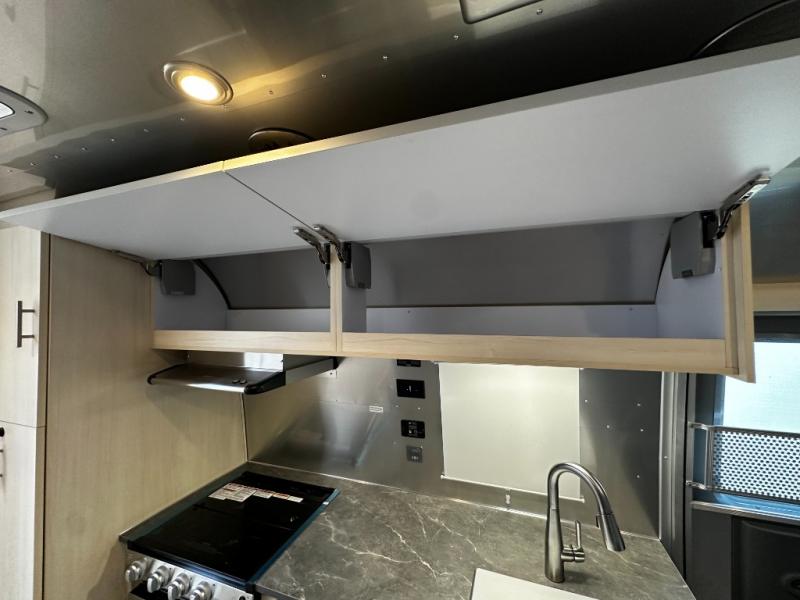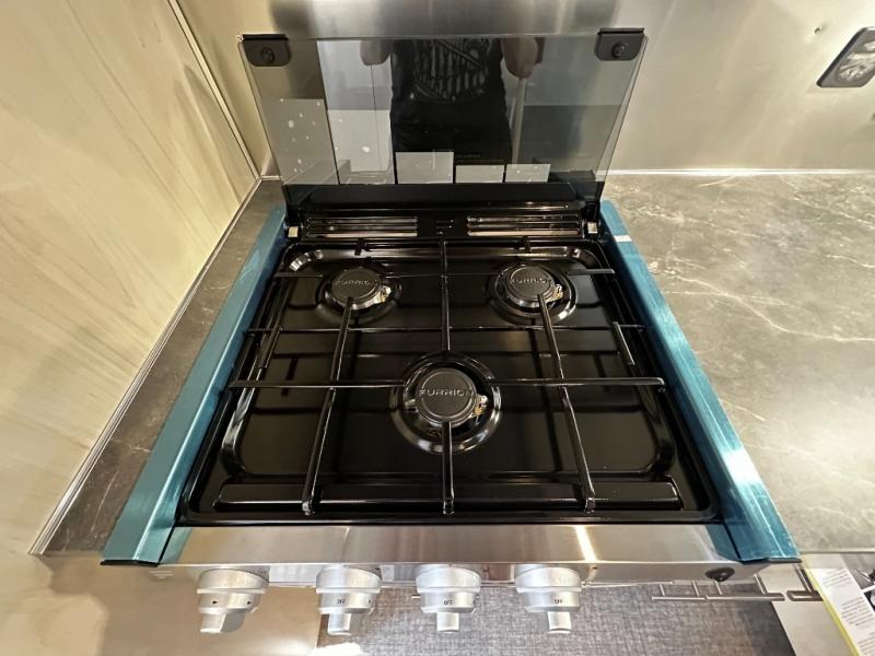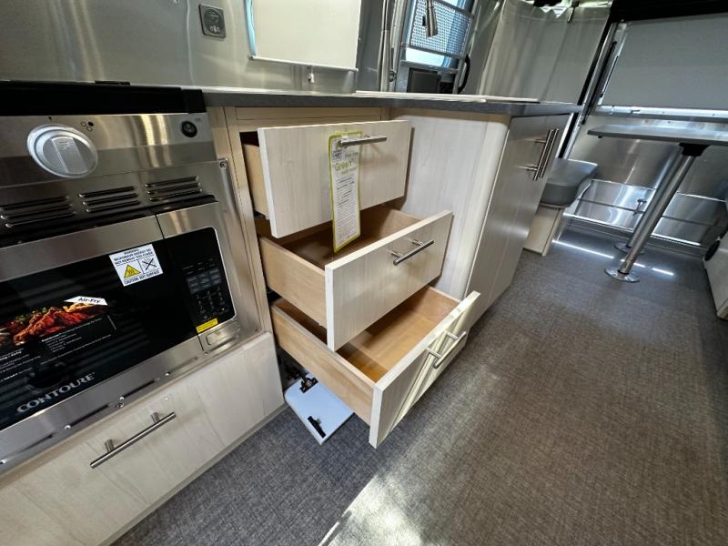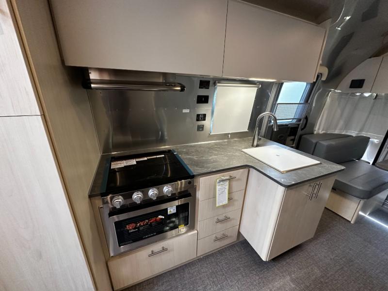 The 27FBT layout maximizes space with a front twin-bed configuration, making it easier for two people to sleep independently without sacrificing comfort. The open, airy interior is wrapped in panoramic windows, modern cabinetry, stainless-steel appliances, and soft accent lighting – all designed with a clean, contemporary feel that reflects Airstream's commitment to quality craftsmanship.