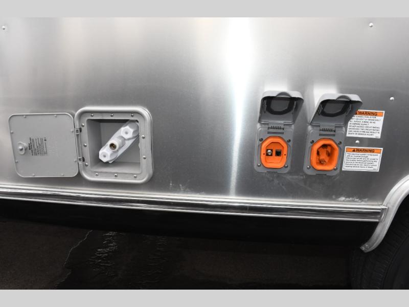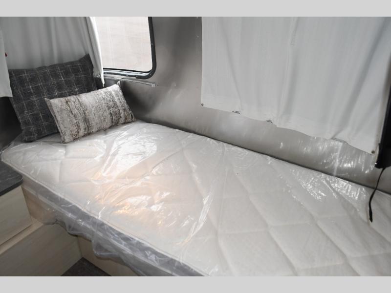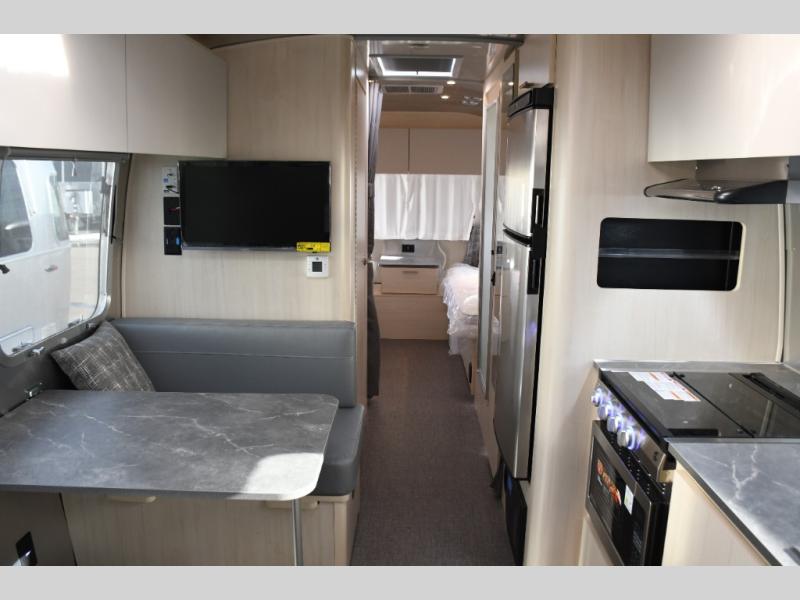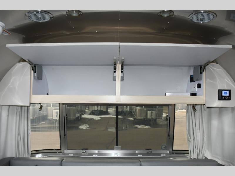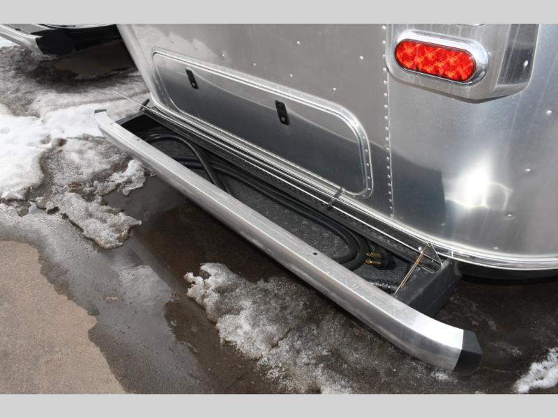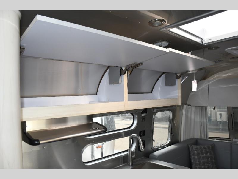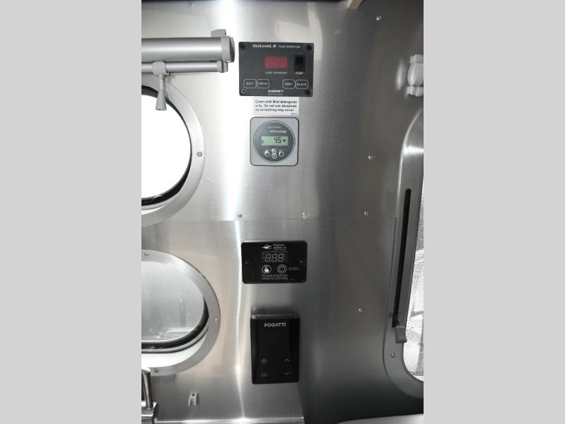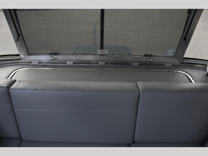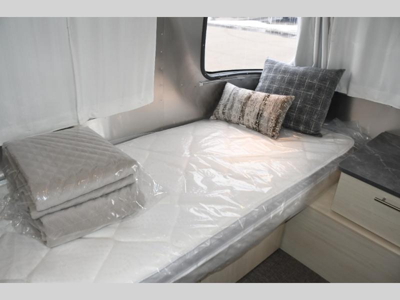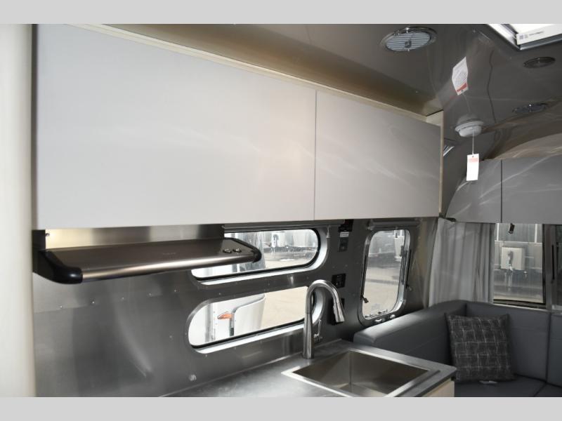 With each Flying Cloud travel trailer by Airstream, there are two axles, and each is built for ease of towing, plus there is a rear-view camera to make reversing and parking easier, and stainless-steel front stone guards to protect the lower segments from road debris. The iconic Airstream design is created outside and inside by the semi-monocoque aluminum superstructure, the temperature reducing one-piece white aluminum roof, the panoramic front windows, and the stylish aluminum wheels. The interior will have you feeling right at home with handcrafted cabinetry, plenty of storage and counter space, sleek roller blinds and blackout curtains, plus residential style faucets!