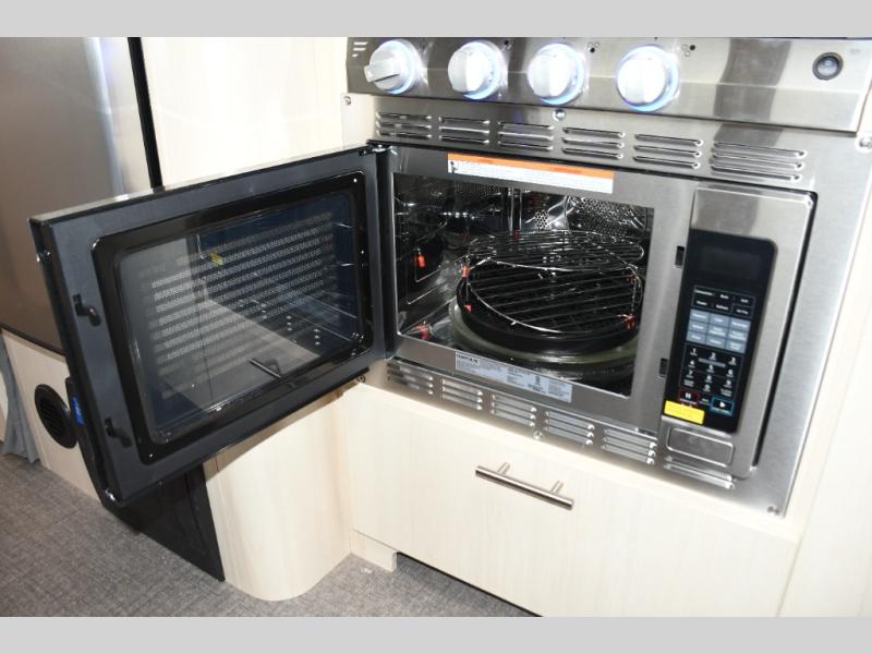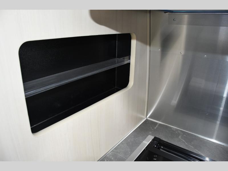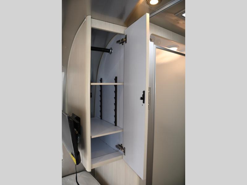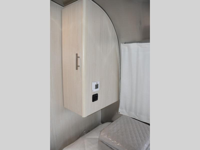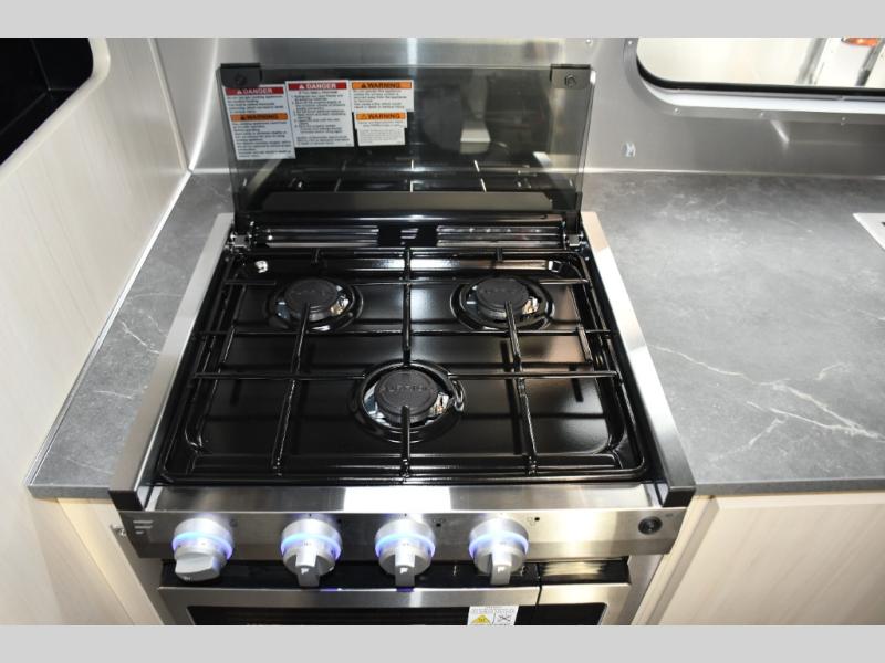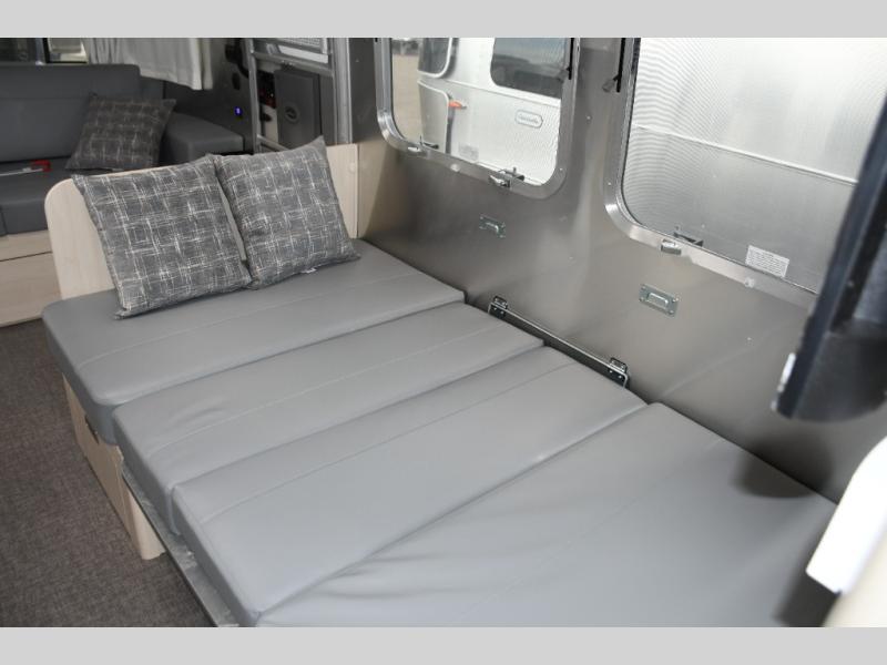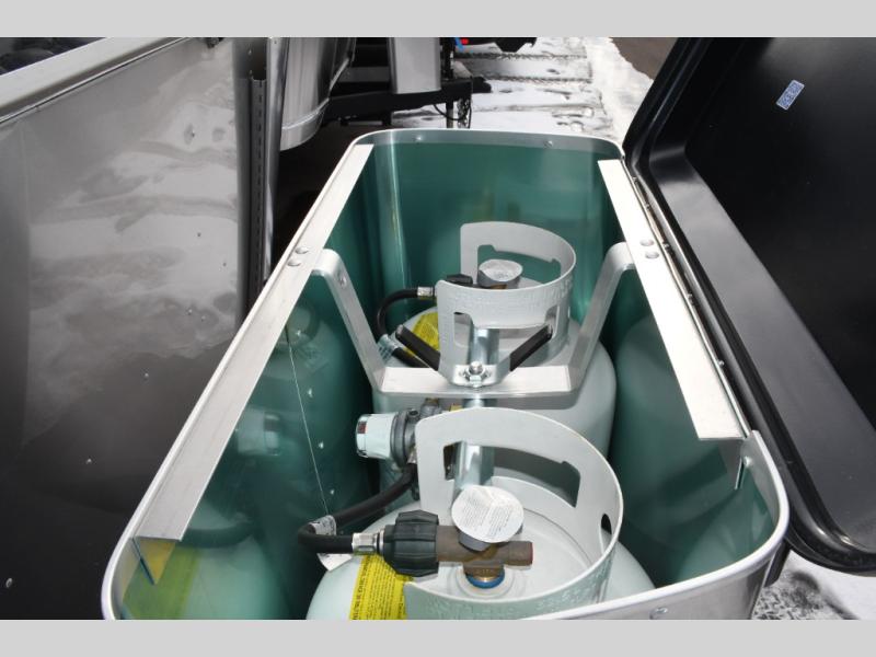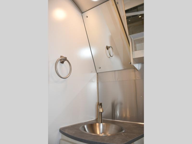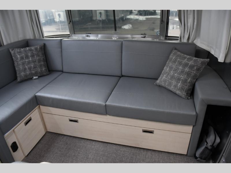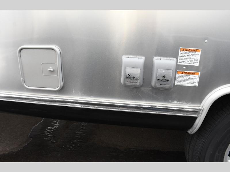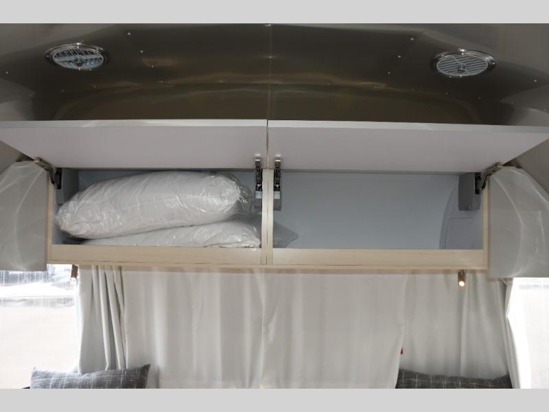 With each Flying Cloud travel trailer by Airstream, there are two axles, and each is built for ease of towing, plus there is a rear-view camera to make reversing and parking easier, and stainless-steel front stone guards to protect the lower segments from road debris. The iconic Airstream design is created outside and inside by the semi-monocoque aluminum superstructure, the temperature reducing one-piece white aluminum roof, the panoramic front windows, and the stylish aluminum wheels. The interior will have you feeling right at home with handcrafted cabinetry, plenty of storage and counter space, sleek roller blinds and blackout curtains, plus residential style faucets!