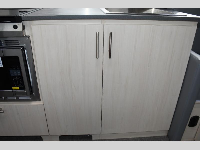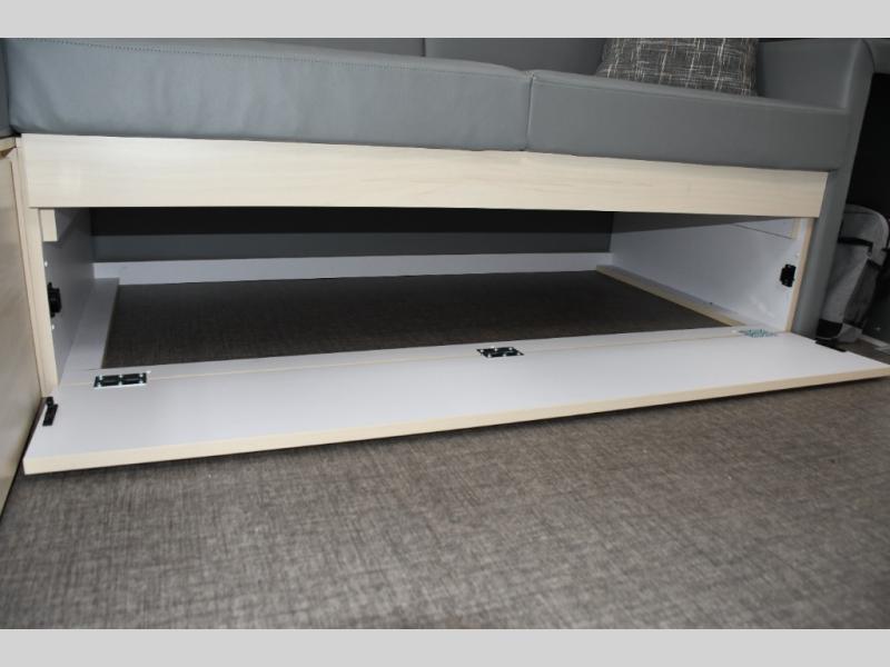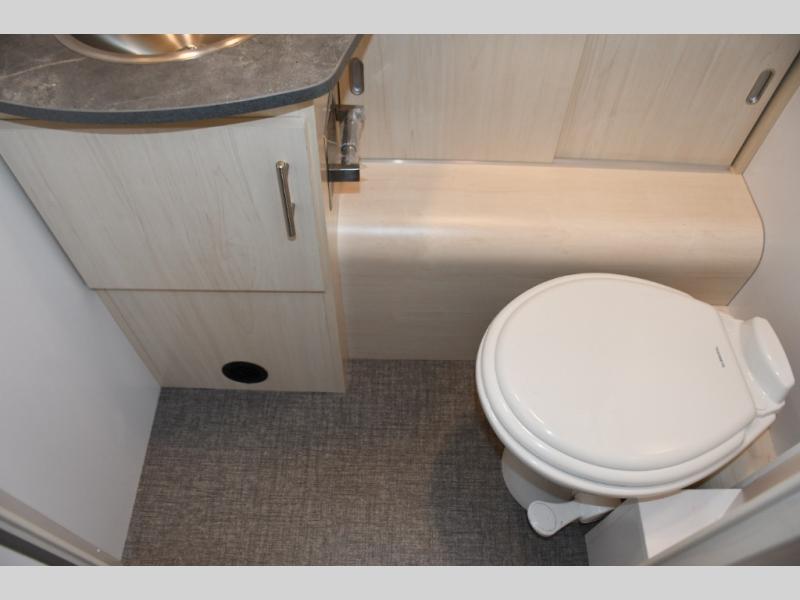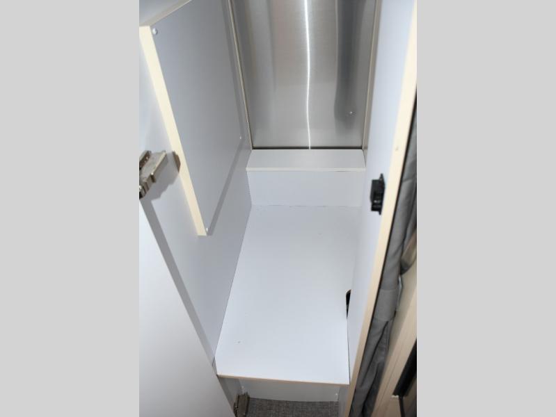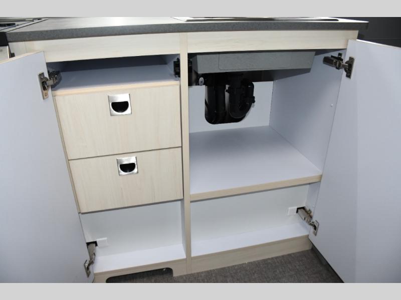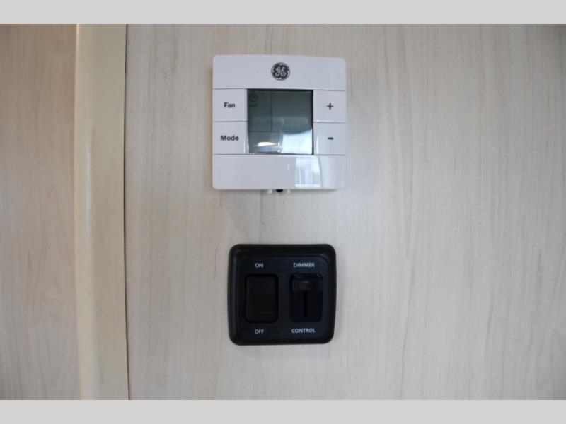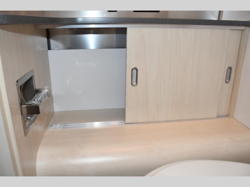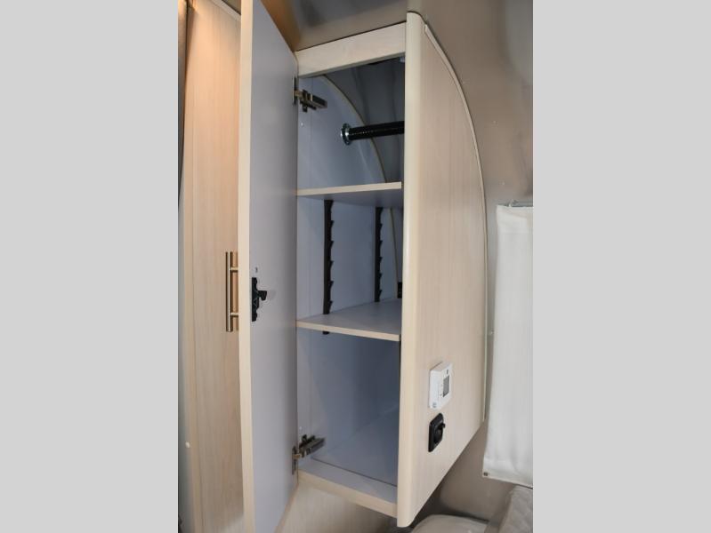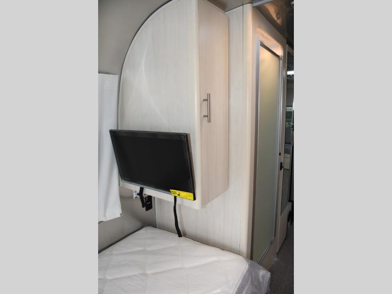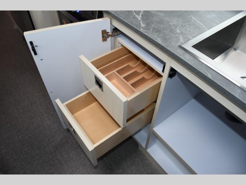 With each Flying Cloud travel trailer by Airstream, there are two axles, and each is built for ease of towing, plus there is a rear-view camera to make reversing and parking easier, and stainless-steel front stone guards to protect the lower segments from road debris. The iconic Airstream design is created outside and inside by the semi-monocoque aluminum superstructure, the temperature reducing one-piece white aluminum roof, the panoramic front windows, and the stylish aluminum wheels. The interior will have you feeling right at home with handcrafted cabinetry, plenty of storage and counter space, sleek roller blinds and blackout curtains, plus residential style faucets!
