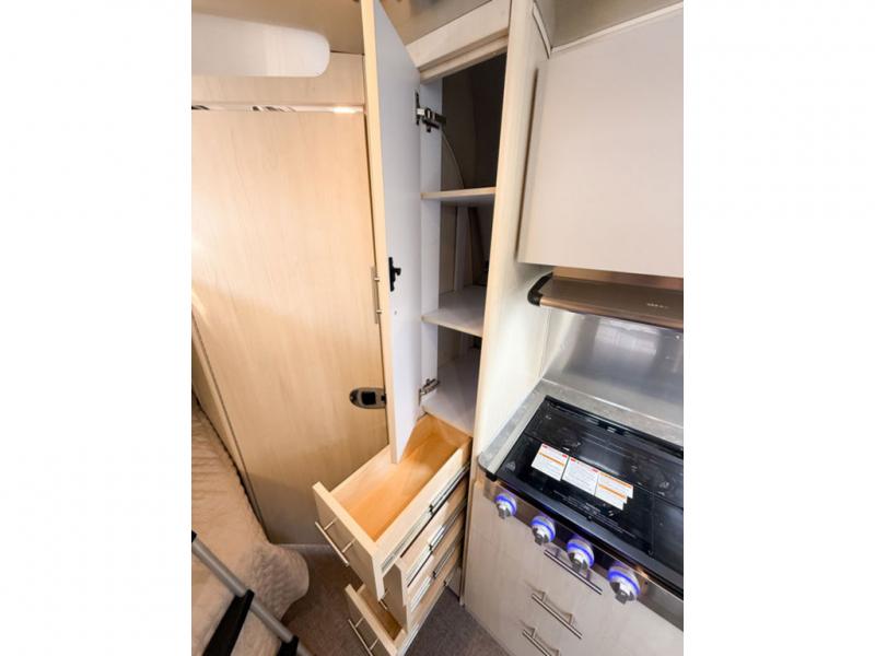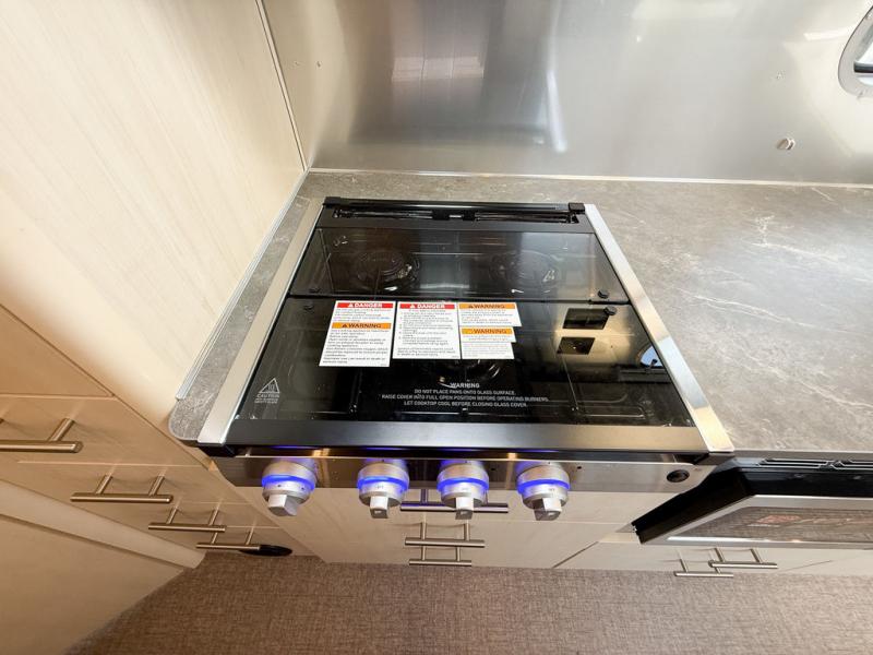 The family-friendly and popular Flying Cloud travel trailers by Airstream are built for ease of towing with a rear-view camera to make reversing and parking easier and stainless-steel front stone guards to protect the lower segments from road debris. The iconic Airstream design is created outside and inside by the semi-monocoque aluminum superstructure, the temperature reducing one-piece white aluminum roof, the panoramic front windows, and the stylish aluminum wheels. The interior will have you feeling right at home with handcrafted cabinetry, plenty of storage and counter space, sleek roller blinds and blackout curtains, plus residential style faucets!