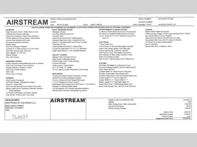 New 2026 Airstream Flying Cloud 30FB Bunk QUEEN Travel Trailer