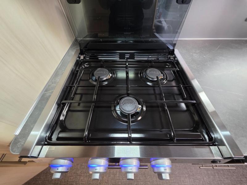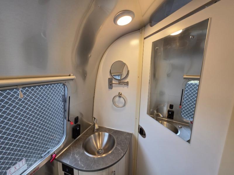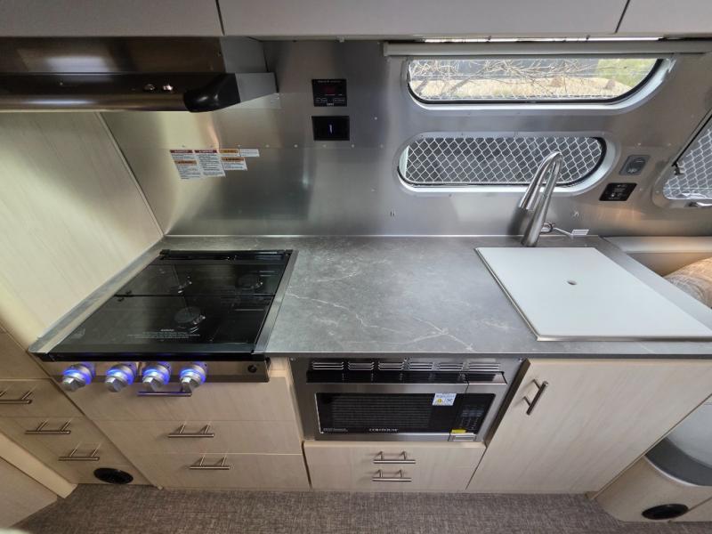 The family-friendly and popular Flying Cloud travel trailers by Airstream are built for ease of towing with a rear-view camera to make reversing and parking easier and stainless-steel front stone guards to protect the lower segments from road debris. The iconic Airstream design is created outside and inside by the semi-monocoque aluminum superstructure, the temperature reducing one-piece white aluminum roof, the panoramic front windows, and the stylish aluminum wheels. The interior will have you feeling right at home with handcrafted cabinetry, plenty of storage and counter space, sleek roller blinds and blackout curtains, plus residential style faucets!