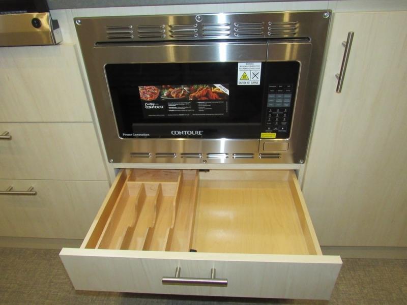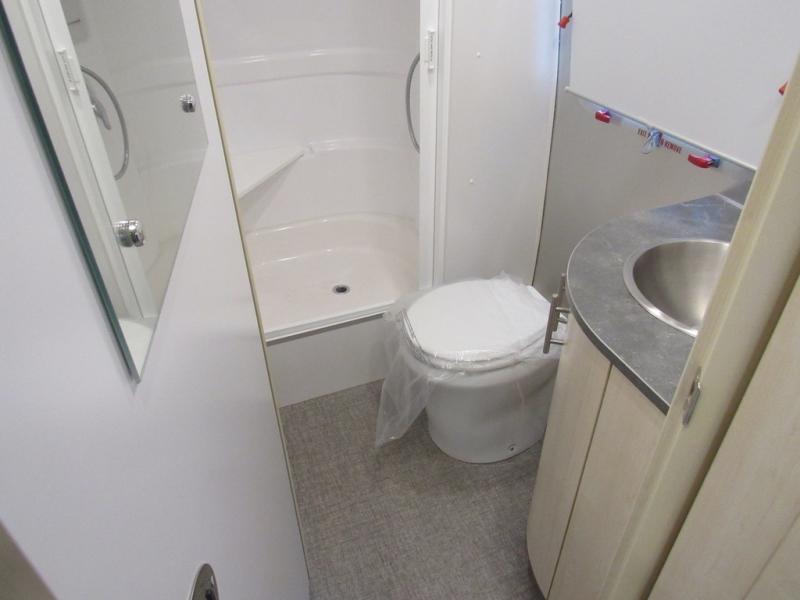 When you need to work while traveling, this Flying Cloud provides a rear corner office complete with a dedicated workspace including an office chair that slides into a recessed groove in the edge of the desk allowing this space to also convert to a sleeping or relaxing area as well. The front private bedroom offers a queen bed with storage on each side and a 24" 12V DC Smart TV with Bluetooth. You can also choose the optional twin beds in place of the front queen bed. The main living and kitchen area offers a U-shaped dinette for total comfort when dining, playing games and visiting with everyone. And the sofa offers more relaxation seating, while both furnishings provide extra sleeping space. There is also a full bathroom to keep you refreshed, and the kitchen is loaded with everything you need.