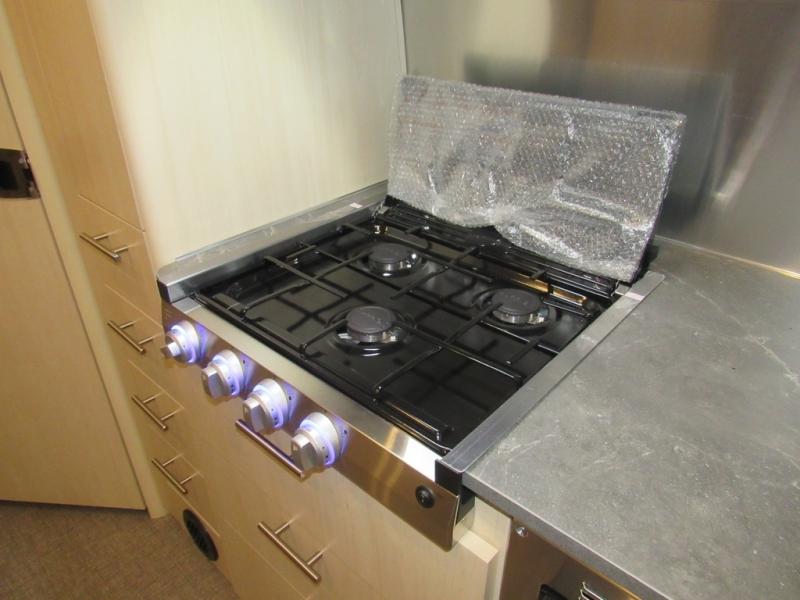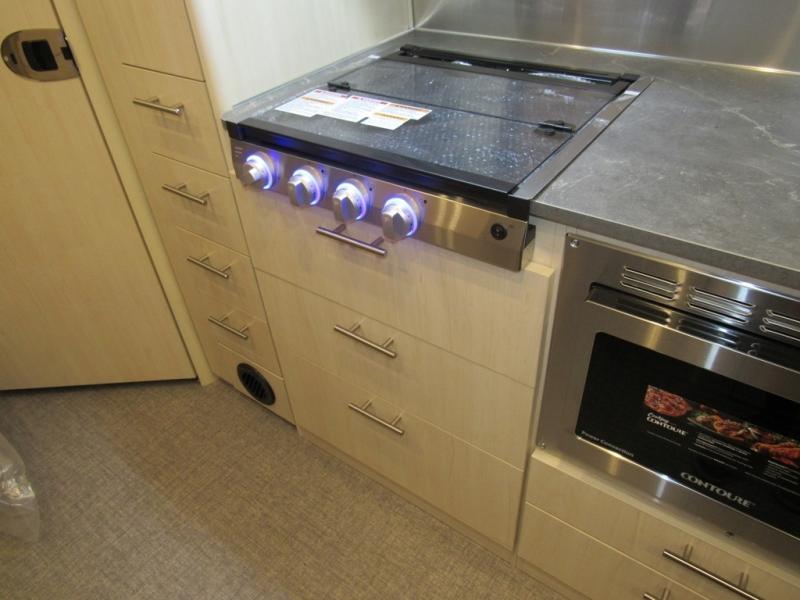 The family-friendly and popular Flying Cloud travel trailers by Airstream are built for ease of towing with a rear-view camera to make reversing and parking easier and stainless steel front stone guards to protect the lower segments from road debris. The iconic Airstream design is created outside and inside by the semi-monocoque aluminum superstructure, the temperature reducing one-piece white aluminum roof, the panoramic front windows, and the stylish aluminum wheels. The interior will have you feeling right at home with handcrafted cabinetry, plenty of storage and counter space, sleek roller blinds and blackout curtains, plus residential style faucets!