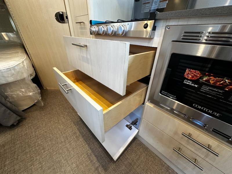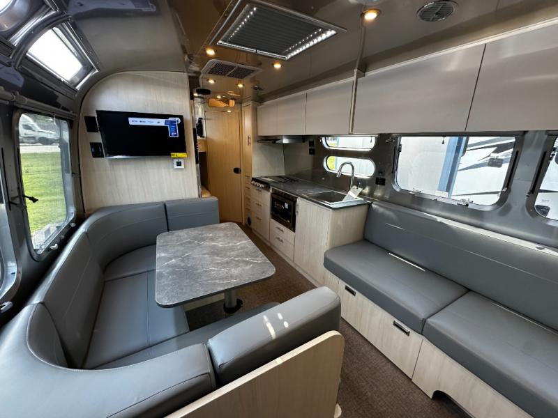The Flying Cloud 30FBBT features Airstream’s iconic aluminum exterior and panoramic front windows, delivering a sleek, durable, and stylish presence. Inside, the front bedroom suite provides a private retreat with a queen bed, while the rear bunk area offers flexible sleeping arrangements for family or guests. The convertible dinette and lounge spaces maximize functionality and comfort.
