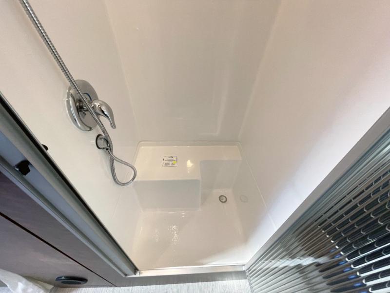 Enjoy a home away from home with this travel trailer! The L-shaped lounge provides a comfortable place to enjoy a meal, play a card game, and even transform into an extra sleeping space for a guest or two smaller guests. The ultra-modern kitchen has a stainless steel three burner cooktop, a Baraldi vent, a 6.8 cu. ft. 12V refrigerator, and a deep stainless steel Moen sink to make clean up easier. The bright white DuPont Corian countertops help light bounce off of the aluminum walls making for a brighter atmosphere and they also have built-in multifunctional storage bins that are flush with the surface behind the sink. Up front there is a queen bed with a memory foam mattress for you to enjoy a good night's rest or you can chose the optional twin beds, depending on your needs. The separated bathroom allows one person to freshen up in the shower with a seat while another uses the private toilet and vanity!