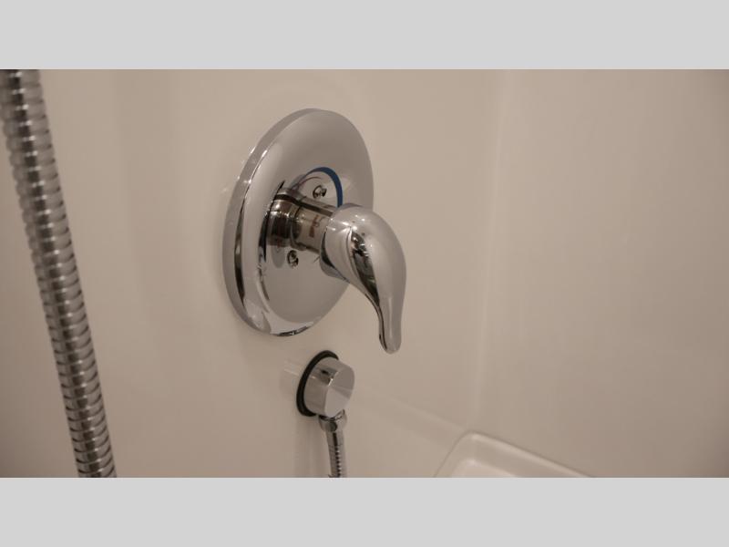 Enjoy a home away from home with this travel trailer! The L-shaped lounge provides a comfortable place to enjoy a meal, play a card game, and even transform into an extra sleeping space for a guest or two smaller guests. The ultra-modern kitchen has a stainless steel three burner cooktop, a Baraldi vent, a 6.8 cu. ft. 12V refrigerator, and a deep stainless steel Moen sink to make clean up easier. The bright white DuPont Corian countertops help light bounce off of the aluminum walls making for a brighter atmosphere and they also have built-in multifunctional storage bins that are flush with the surface behind the sink. Up front there is a queen bed with a memory foam mattress for you to enjoy a good night's rest or you can chose the optional twin beds, depending on your needs. The separated bathroom allows one person to freshen up in the shower with a seat while another uses the private toilet and vanity!