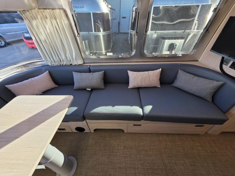 Each one of these Airstream Globetrotter travel trailers are built to last a lifetime with a structural frame and durable fabrics! European inspired and American made with a minimalist design that includes crisp, clean lines and delicate neutral colors for a sophisticated beauty with soft curves, panoramic windows, and handcrafted cabinetry. The HITCH seating upholstery has a fine woven texture, a subtle metallic tip print, and a distinctive two-tone feel, as well as durable and stain-resistant. You won't have to go far when charging your electronics thanks to the strategically placed USB and 110V outlets throughout. The QuietStream ducted A/C system can quickly cool the inside and also has a heat pump to pull ambient heat from the air. Come choose your favorite model today!