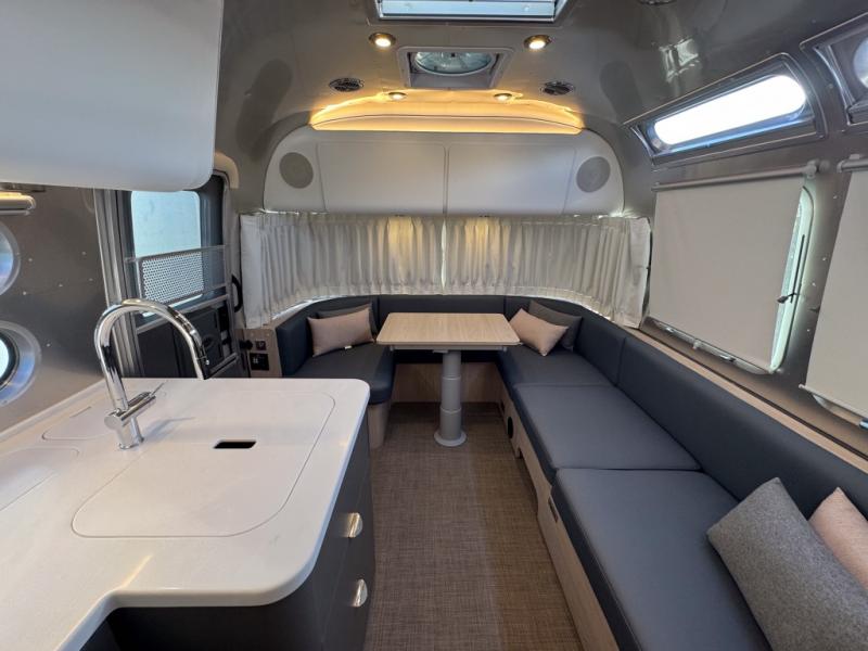 Each one of these Airstream Globetrotter travel trailers are built to last a lifetime with a structural frame and durable fabrics! European inspired and American made with a minimalist design that includes crisp, clean lines and delicate neutral colors for a sophisticated beauty with soft curves, panoramic windows, wrap-around upholstery, and backlighting. The HITCH seating upholstery has a fine woven texture, a subtle metallic tip print, and a distinctive two-tone feel, as well as durable and stain-resistant. You won't have to go far when charging your electronics thanks to the strategically placed USB and 110V outlets throughout. The QuietStream ducted A/C system can quickly cool the inside and also has a heat pump to pull ambient heat from the air. Come choose your favorite model today!