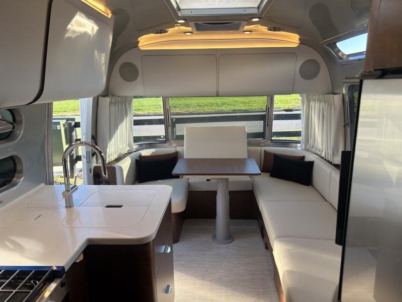 Each one of these Airstream Globetrotter travel trailers are built to last a lifetime with a structural frame and durable fabrics! European inspired and American made with a minimalist design that includes crisp, clean lines and delicate neutral colors for a sophisticated beauty with soft curves, panoramic windows, wrap-around upholstery, and backlighting. The HITCH seating upholstery has a fine woven texture, a subtle metallic tip print, and a distinctive two-tone feel, as well as durable and stain-resistant. You won't have to go far when charging your electronics thanks to the strategically placed USB and 110V outlets throughout. The QuietStream ducted A/C system can quickly cool the inside and also has a heat pump to pull ambient heat from the air. Come choose your favorite model today!