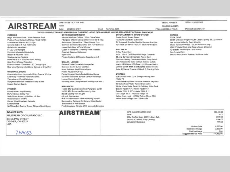 New 2026 Airstream Globetrotter 25FB Twin Travel Trailer