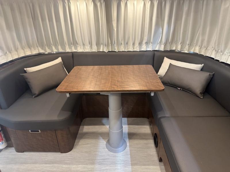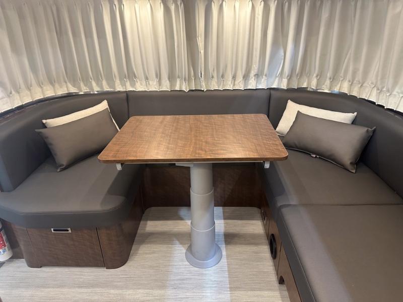 Each one of these Airstream Globetrotter travel trailers are built to last a lifetime with a structural frame and durable fabrics! European inspired and American made with a minimalist design that includes crisp, clean lines and delicate neutral colors for a sophisticated beauty with soft curves, panoramic windows, wrap-around upholstery, and backlighting. The HITCH seating upholstery has a fine woven texture, a subtle metallic tip print, and a distinctive two-tone feel, as well as durable and stain-resistant. You won't have to go far when charging your electronics thanks to the strategically placed USB and 110V outlets throughout. The QuietStream ducted A/C system can quickly cool the inside and also has a heat pump to pull ambient heat from the air. Come choose your favorite model today!