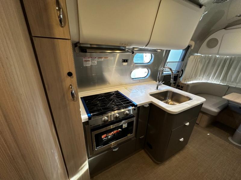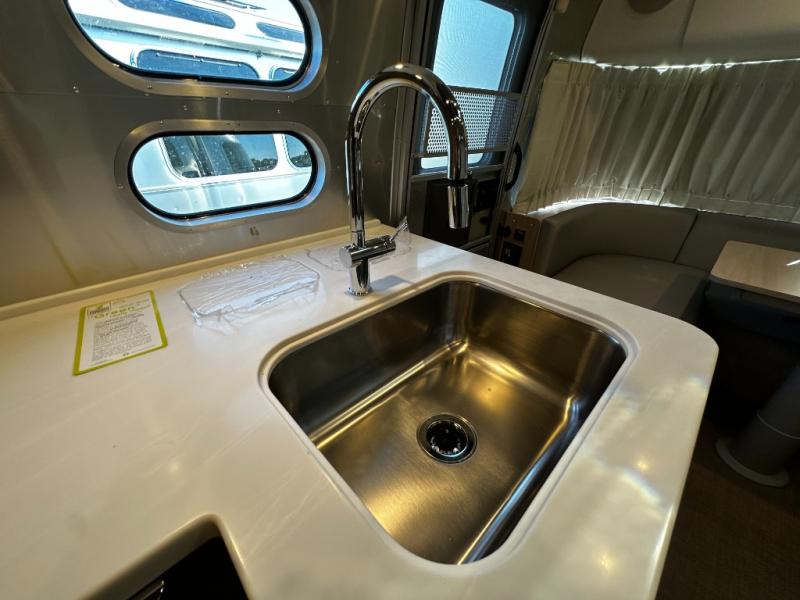 The 25FBT’s lightweight, aerodynamic design makes towing simple and fuel-efficient. Optional solar prep and energy-efficient systems allow you to camp off-grid for extended periods, giving you the freedom to explore remote locations with confidence. Rugged construction and Airstream’s attention to detail ensure a reliable, long-lasting travel experience.