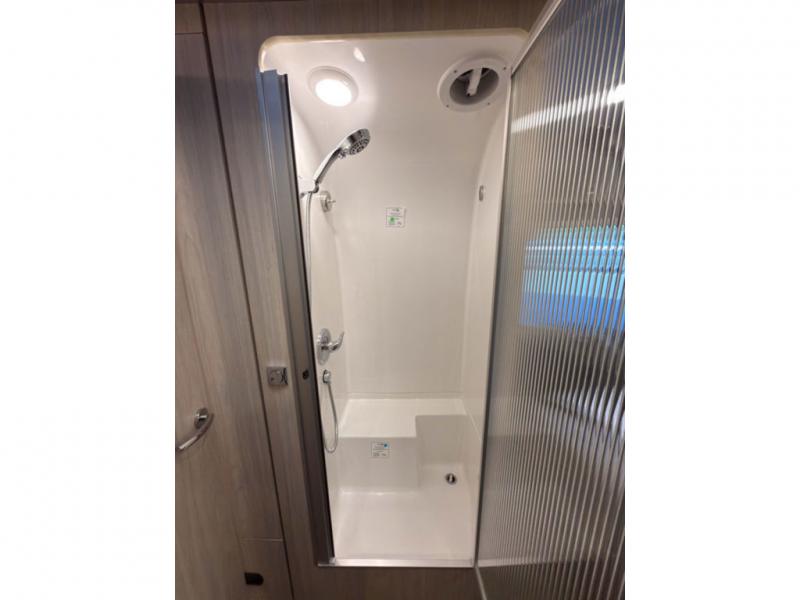You will find comfort and luxury all throughout this travel trailer! There is a queen bed with a memory foam mattress, nightstands on either side, and a 24" 12V DC Smart TV with Bluetooth. You can also choose the optional twin beds, depending on your needs. The separated bathroom has a private toilet and vanity together across from an independent shower with a seat to freshen up each morning. You can prepare your best meals in the ultra-modern kitchen with the stainless steel three burner cooktop, the oven, the deep stainless steel Moen sink, and the Dupont Corian countertops will be easy to clean, plus they have multifunctional storage bins that are flush to the surface behind the sink.