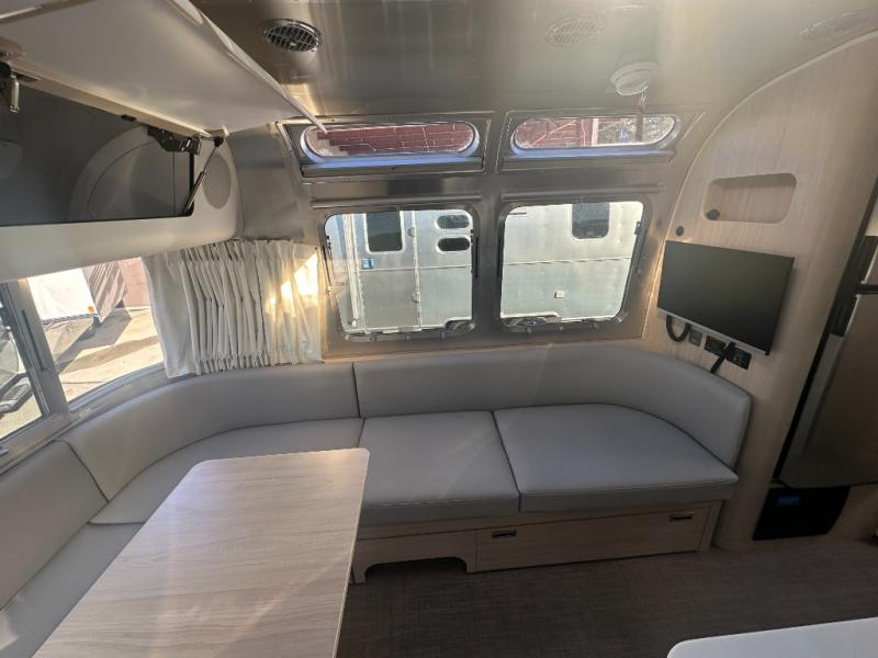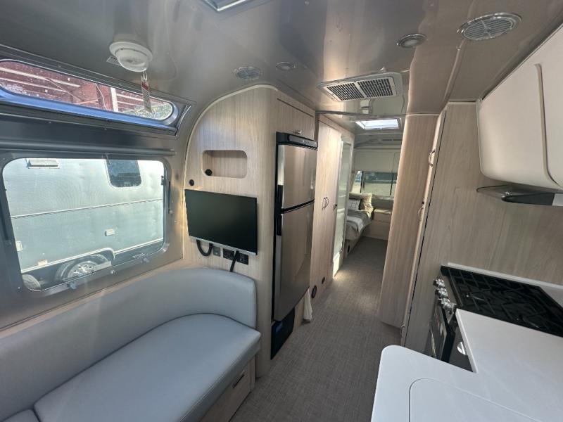 Each one of these Airstream Globetrotter travel trailers are built to last a lifetime with a structural frame and durable fabrics! European inspired and American made with a minimalist design that includes crisp, clean lines and delicate neutral colors for a sophisticated beauty with soft curves, panoramic windows, wrap-around upholstery, and backlighting. The HITCH seating upholstery has a fine woven texture, a subtle metallic tip print, and a distinctive two-tone feel, as well as durable and stain-resistant. You won't have to go far when charging your electronics thanks to the strategically placed USB and 110V outlets throughout. The QuietStream ducted A/C system can quickly cool the inside and also has a heat pump to pull ambient heat from the air. Come choose your favorite model today!