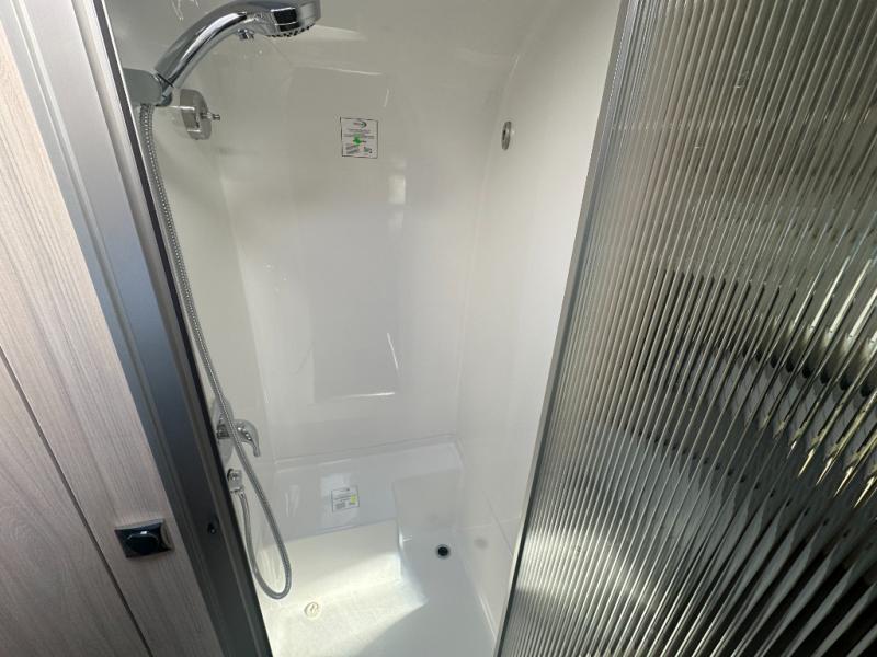 You will find comfort and luxury all throughout this travel trailer! From the front twin beds with AdaptaFlex memory foam mattresses and nightstands on either side, to the rear L-shaped lounge that you can enjoy your meals at and convert into an extra sleeping space. The separated bathroom has a private toilet and vanity together across from an independent shower with a seat to freshen up each morning. You can prepare your best meals in the ultra-modern kitchen with the stainless steel three burner cooktop, the oven, the deep stainless steel Moen sink, and the DuPont Corian countertops will be easy to clean, plus they have multifunctional storage bins that are flush to the surface behind the sink.