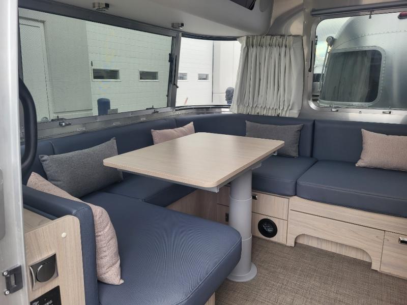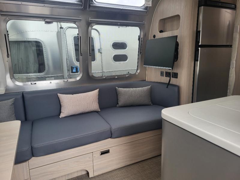 Each one of these Airstream Globetrotter travel trailers are built to last a lifetime with a structural frame and durable fabrics! European inspired and American made with a minimalist design that includes crisp, clean lines and delicate neutral colors for a sophisticated beauty with soft curves, panoramic windows, wrap-around upholstery, and backlighting. The HITCH seating upholstery has a fine woven texture, a subtle metallic tip print, and a distinctive two-tone feel, as well as durable and stain-resistant. You won't have to go far when charging your electronics thanks to the strategically placed USB and 110V outlets throughout. The QuietStream ducted A/C system can quickly cool the inside and also has a heat pump to pull ambient heat from the air. Come choose your favorite model today!